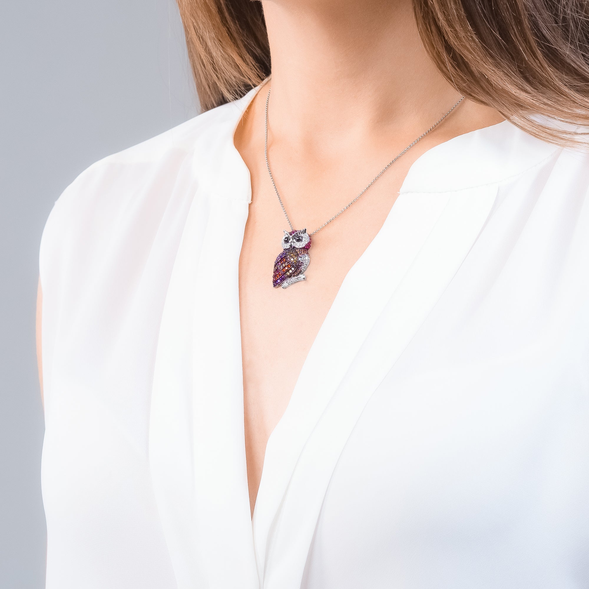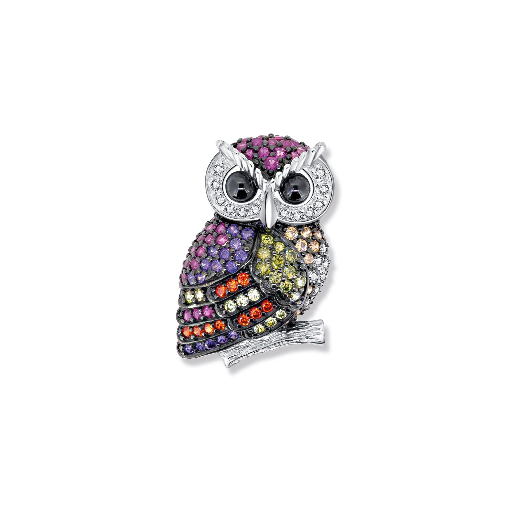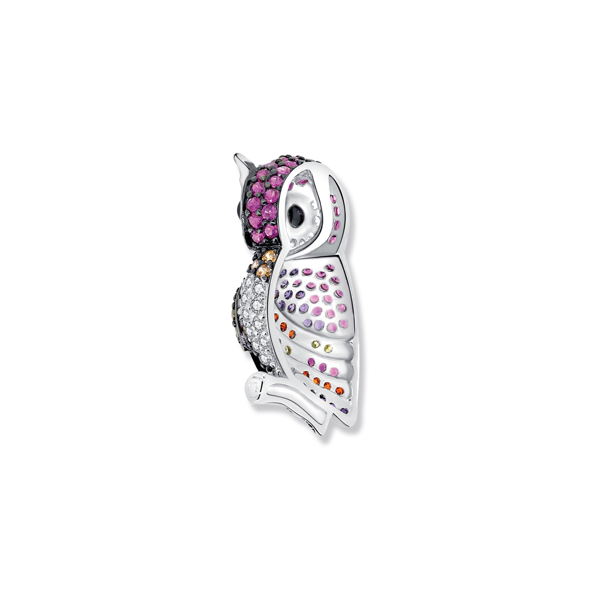 The Antje Owl Pendant made of 925 sterling silver radiates charm and wisdom. With sparkling zirconia stones in vibrant purple and colorful hues, it is an elegant accessory for any occasion.