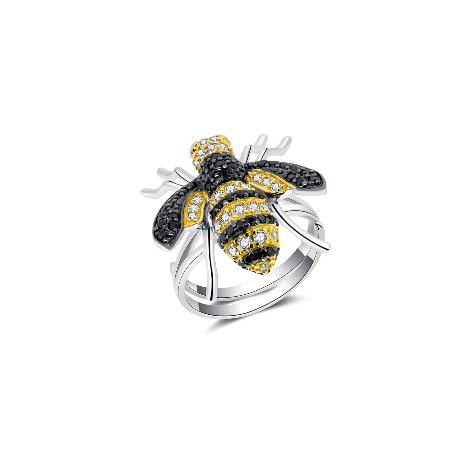 The Bernie Bee Ring made of 925 sterling silver is a stunning accessory that captures the grace of the bee world. Featuring sparkling yellow and black zirconia stones and an adjustable ring band.