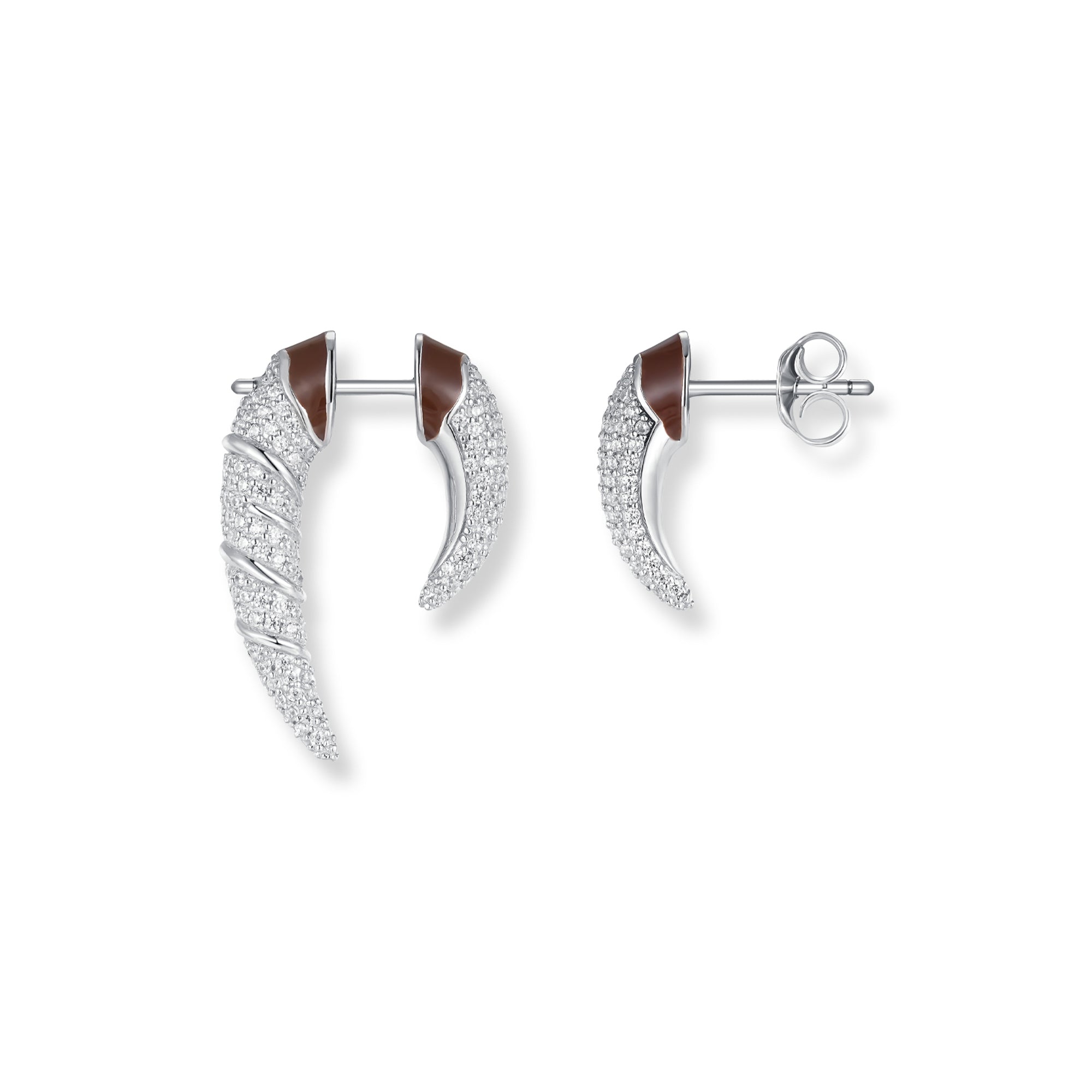 Bright ivory earrings, the rhodium-plated companions to the Shine ivory earrings, radiate timeless elegance. Made from high-quality 925 sterling silver, rhodium-plated and adorned with white zirconia, these earrings are a radiant addition to our collection. A creative expression of luxury and ethics.