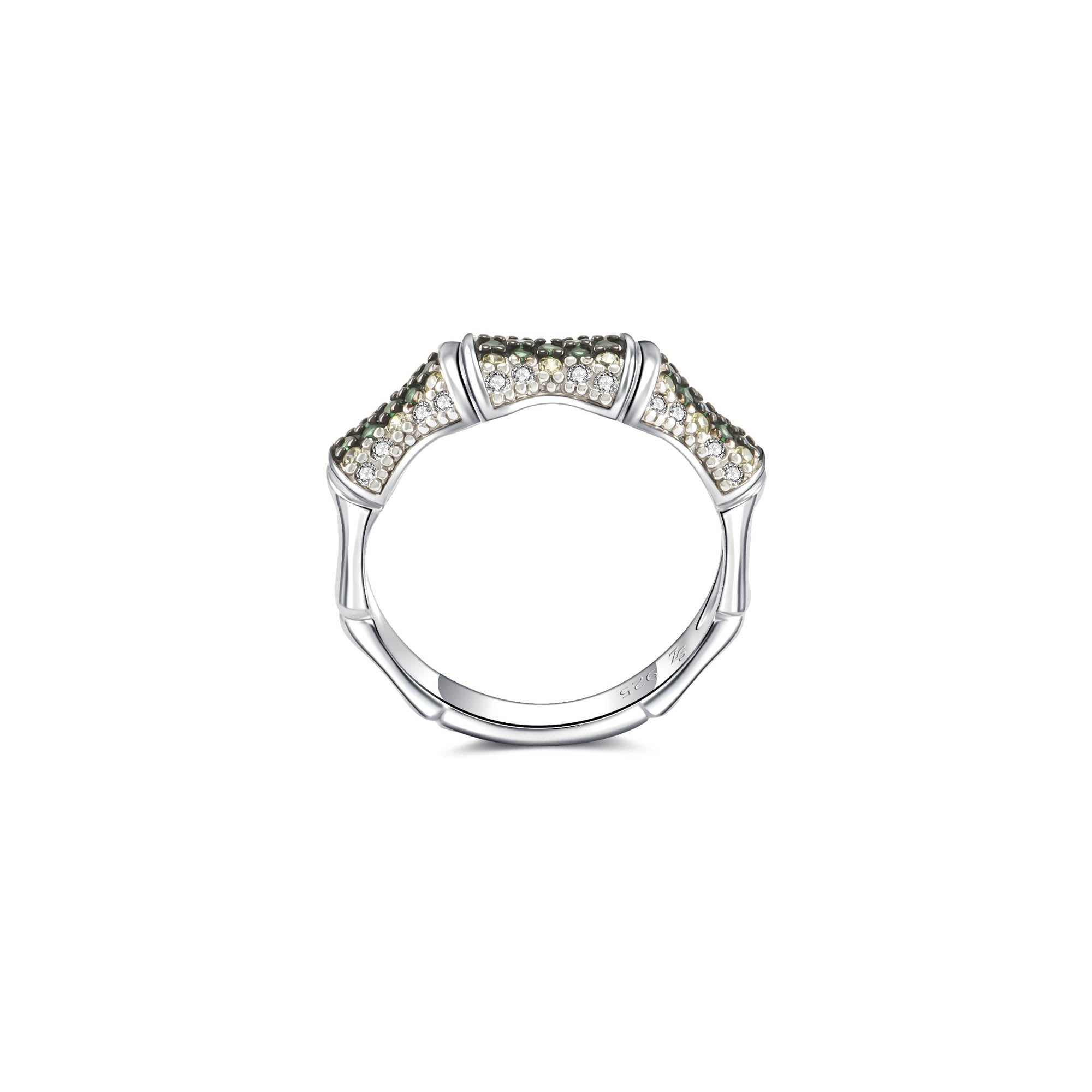 Emerald Bamboo Ring in 925 Sterling Silver, rhodium-plated with multicolored zirconia stones, green, white