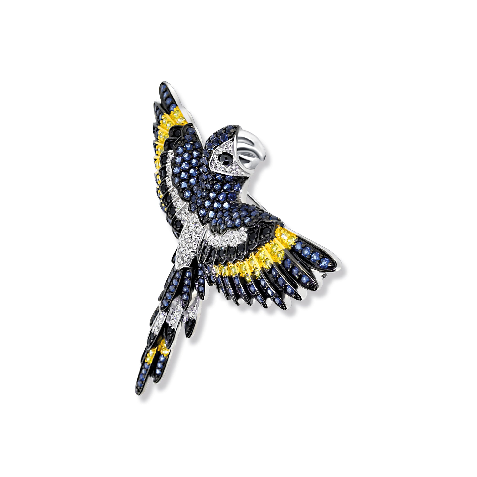 The Francis Parrot Pendant in 925 Sterling Silver is a stunning expression of the colorful splendor of exotic birds. With its vibrant zirconia stones, open wings, and distinctive design, this pendant becomes a striking statement piece that enhances your look.