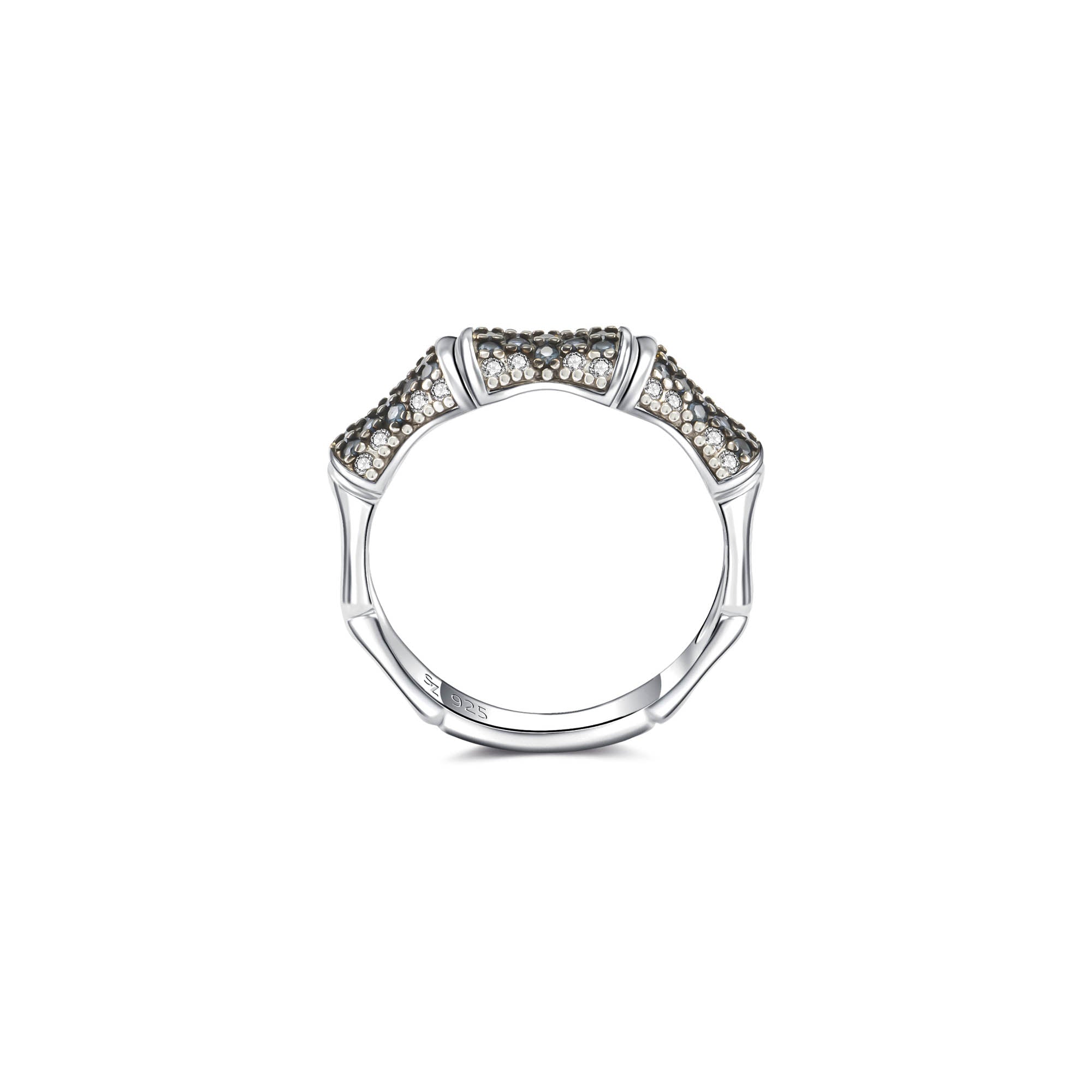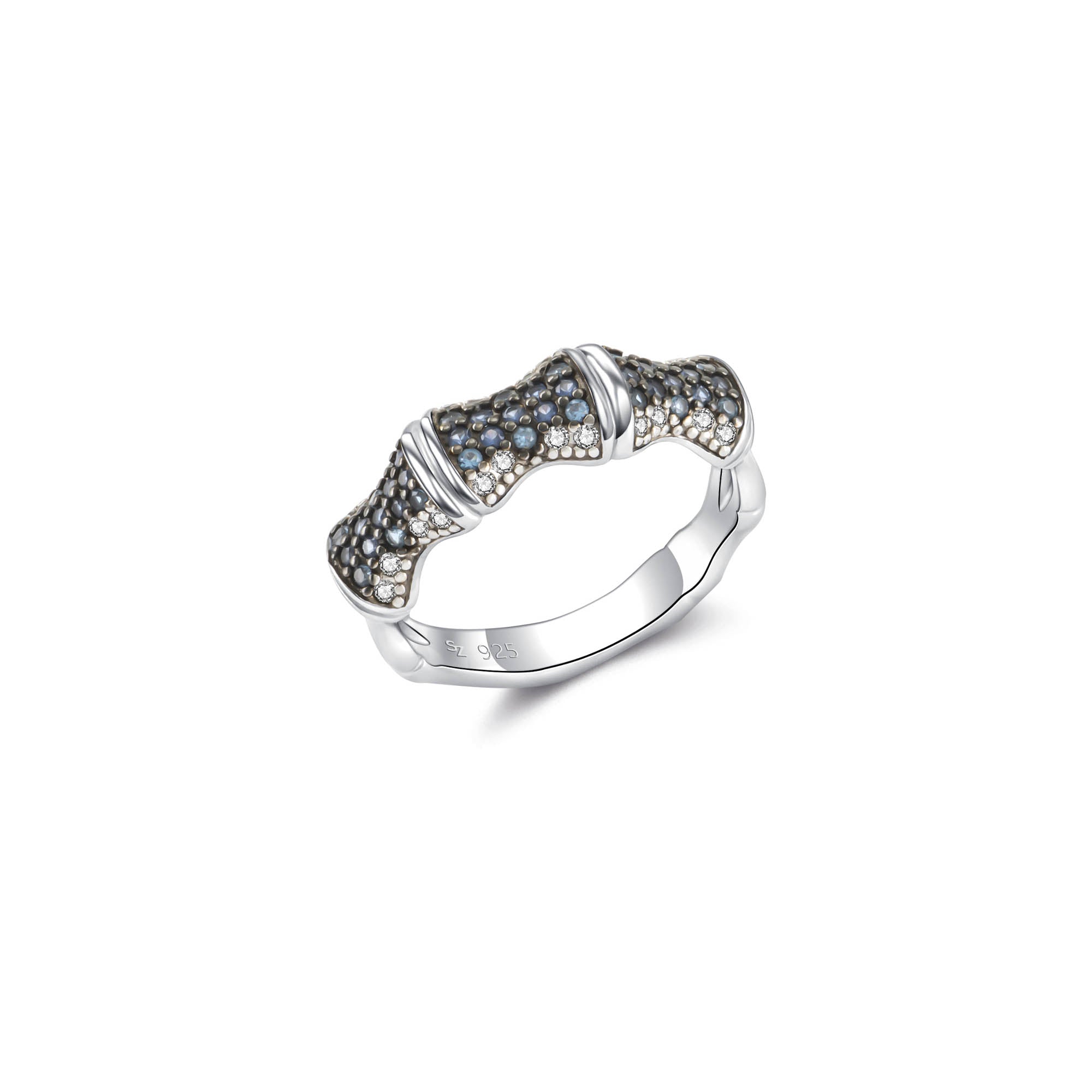 Sapphire Bamboo Ring in 925 Sterling Silver, rhodium-plated with multicolored, blue, white zirconia stones