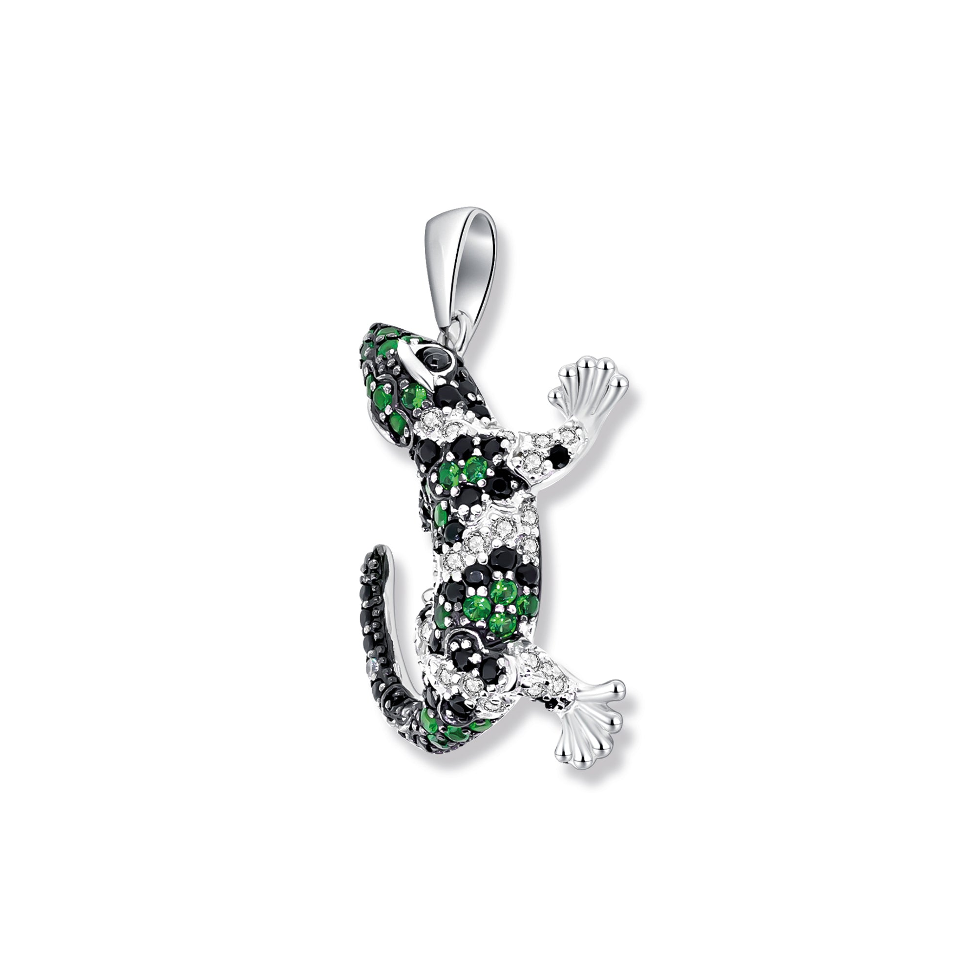 The Scotty Salamander pendant is an elegant and delicate piece of jewelry made from high-quality 925 sterling silver. This pendant captures the grace and beauty of a salamander with green and white zirconia stones. The rhodium-plated and blackened silver gives the pendant a touch of sophistication.