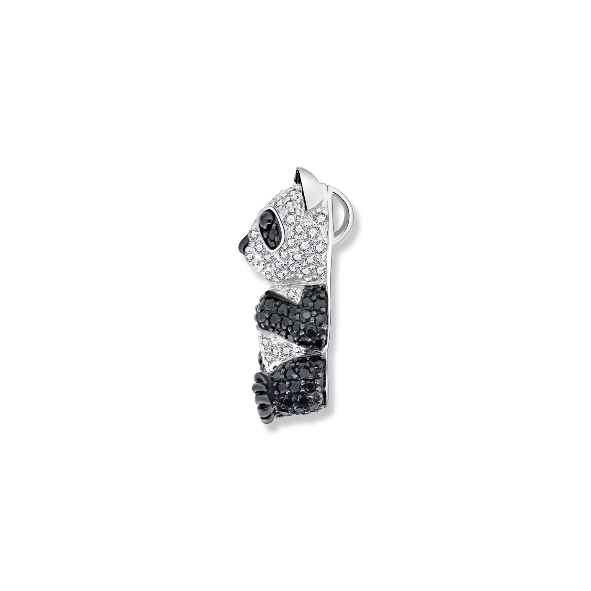 The Tao Panda pendant is a stunning piece of jewelry made from 925 sterling silver, depicting an entire panda. Featuring a combination of black and white zirconia stones along with a rhodium-plated and blackened surface, this pendant exudes confidence and playfulness.