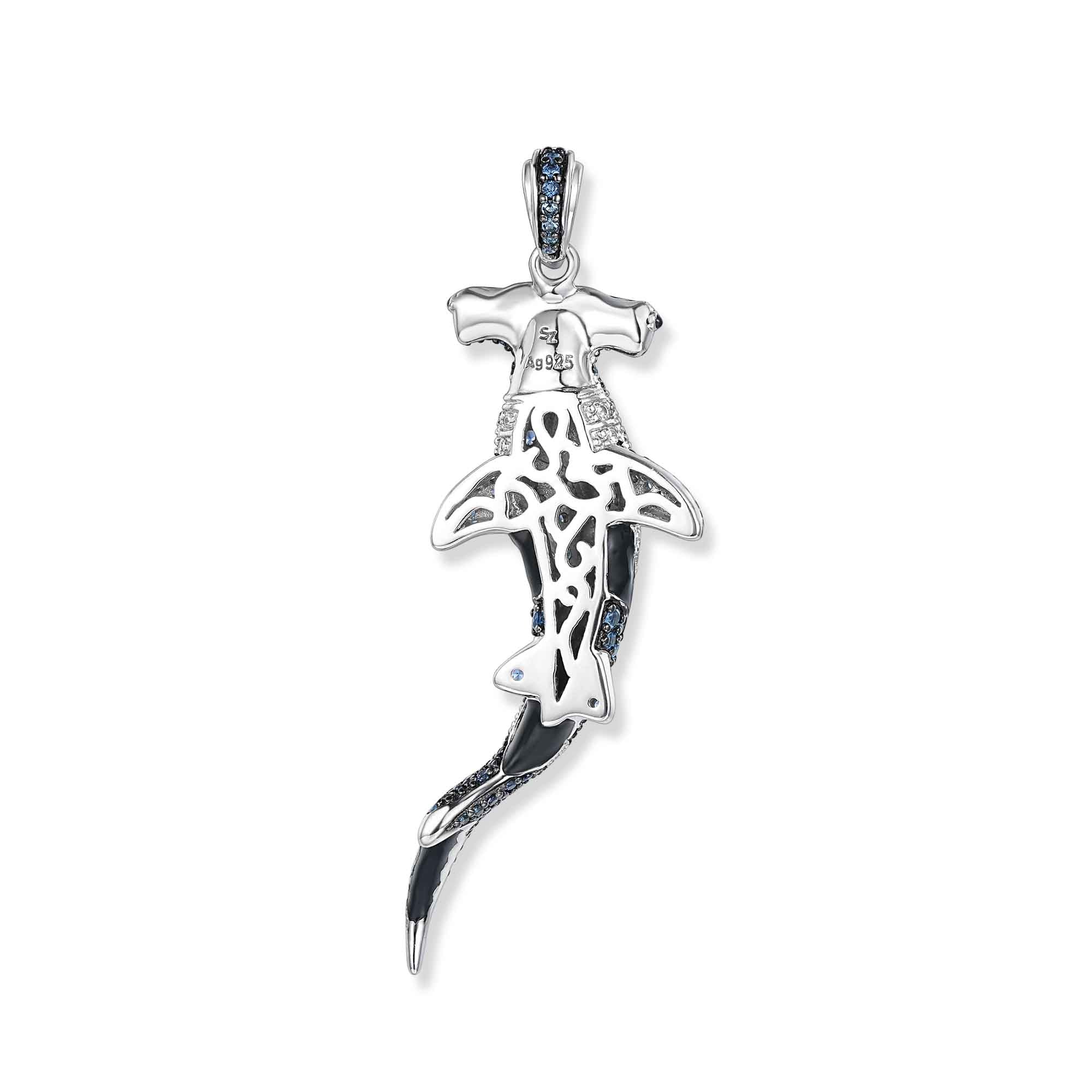 The Harold Hammerhead Pendant made of rhodium-plated sterling silver, adorned with white and blue zirconia as well as black enamel, combines majestic maritime design with harmonious elegance. Part of the exclusive SEINERZEIT collection, this pendant brings the captivating beauty of the sea into your jewelry box.