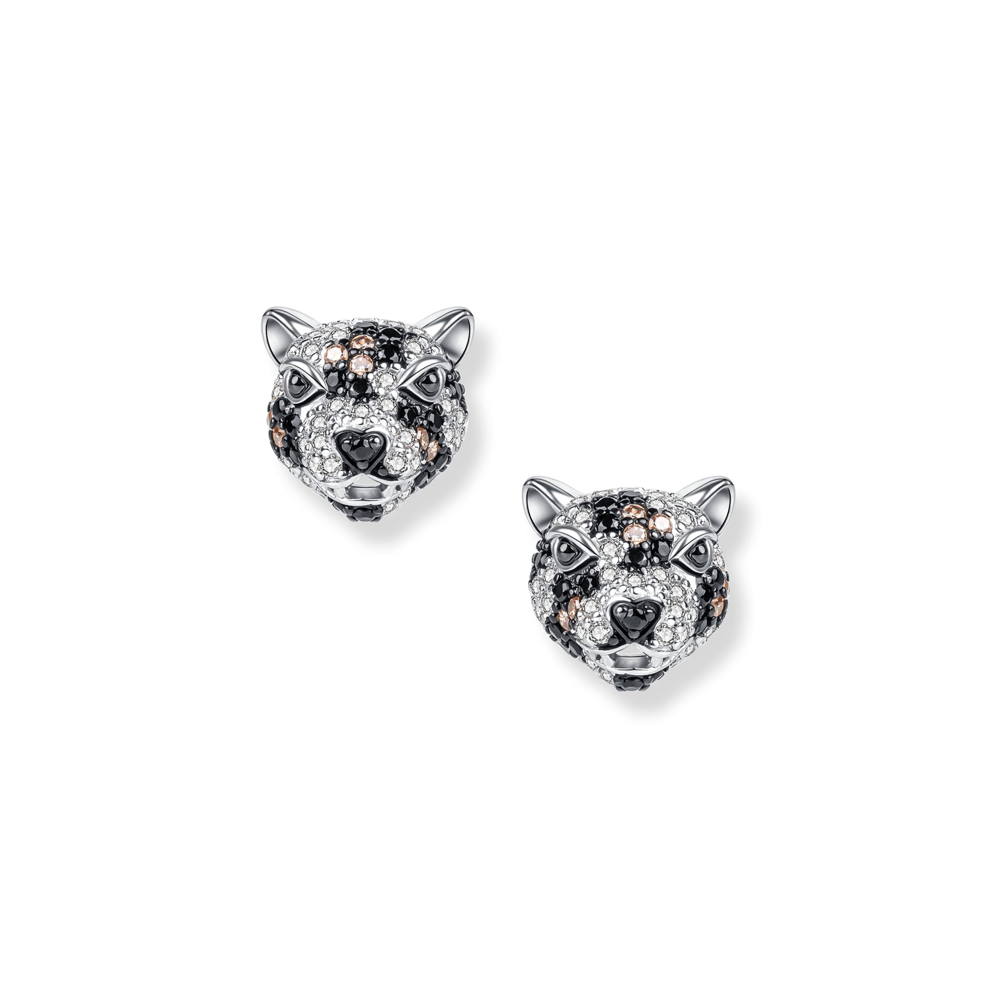 Awaken your wild spirit with the Jack Jaguar earrings made of 925 sterling silver. These exquisite earrings feature the distinctive head of a jaguar, artfully designed and adorned with two-tone zirconia in brown and white. Presented in rhodium-plated and blackened silver, these earrings are impressive accessories that embody strength and style.