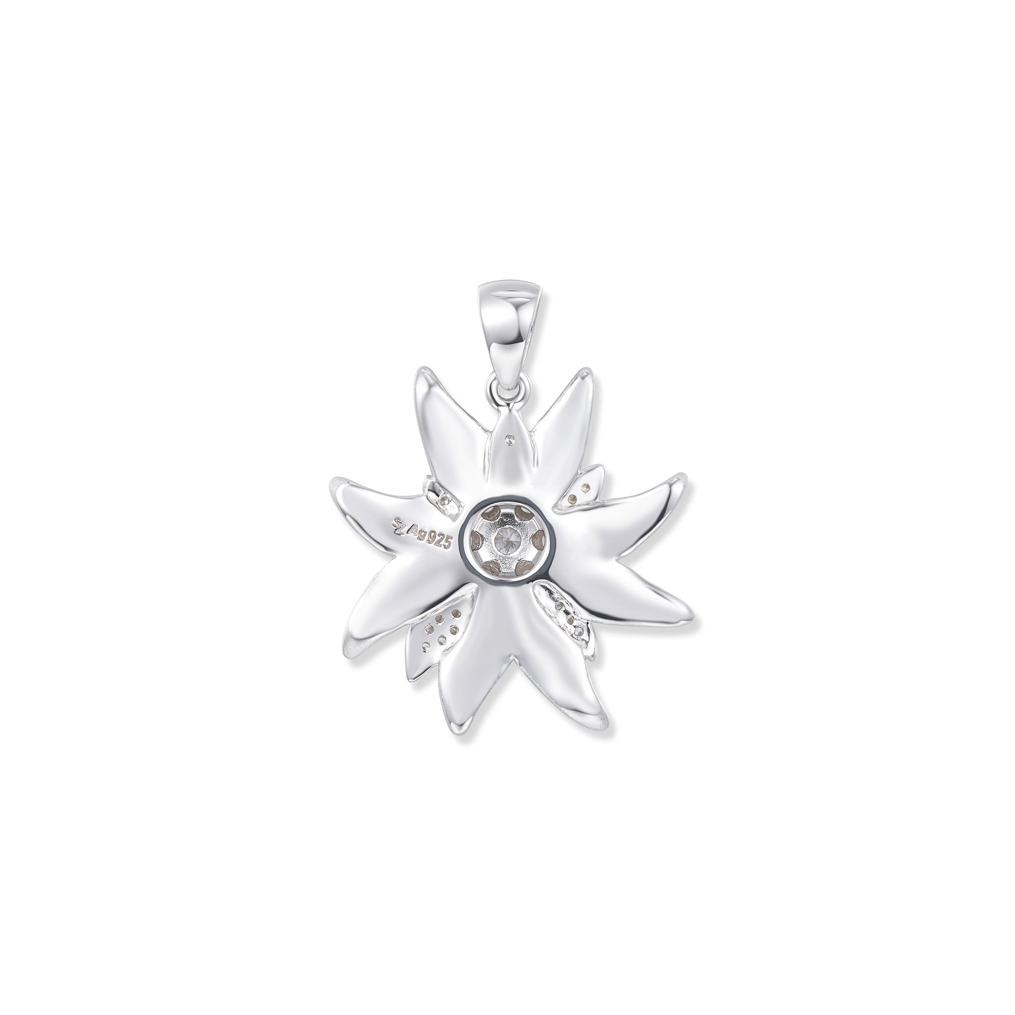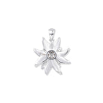 Clara Edelweiß Anhänger aus Sterling Silber – seidenmatte Blüten, weiße Zirkonia & vergoldete Zargen. Ein Hauch Alpenmagie für deine Schmuckkollektion.