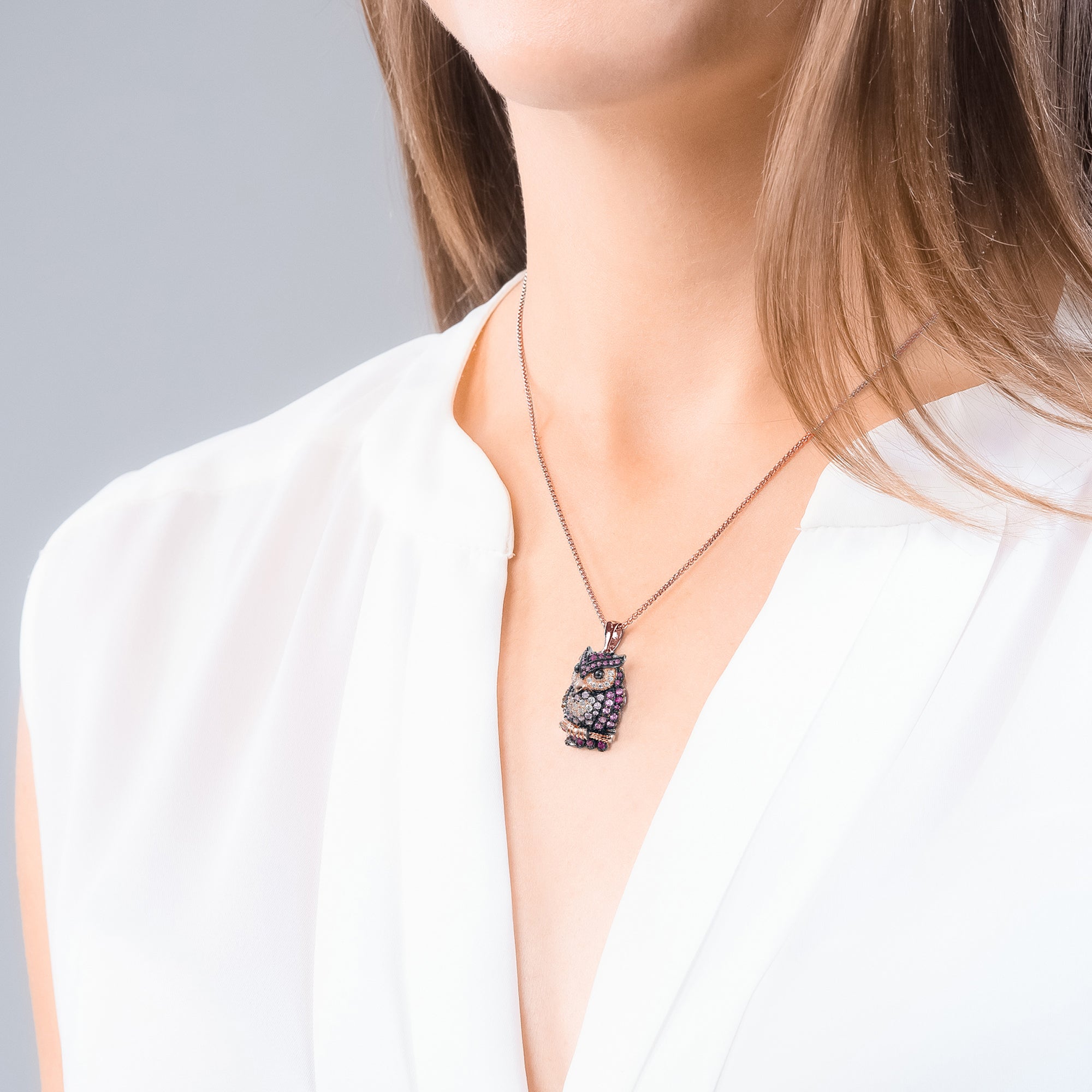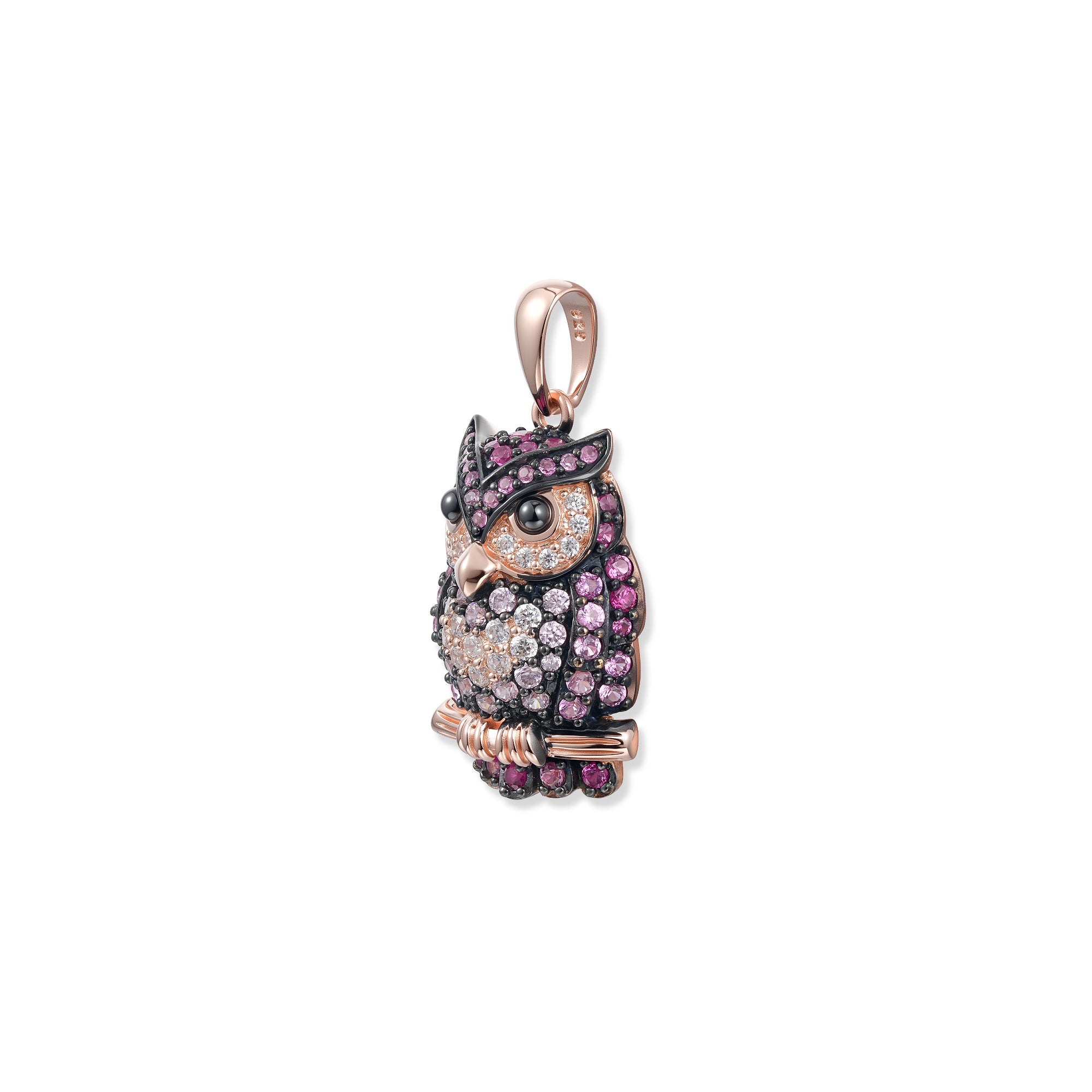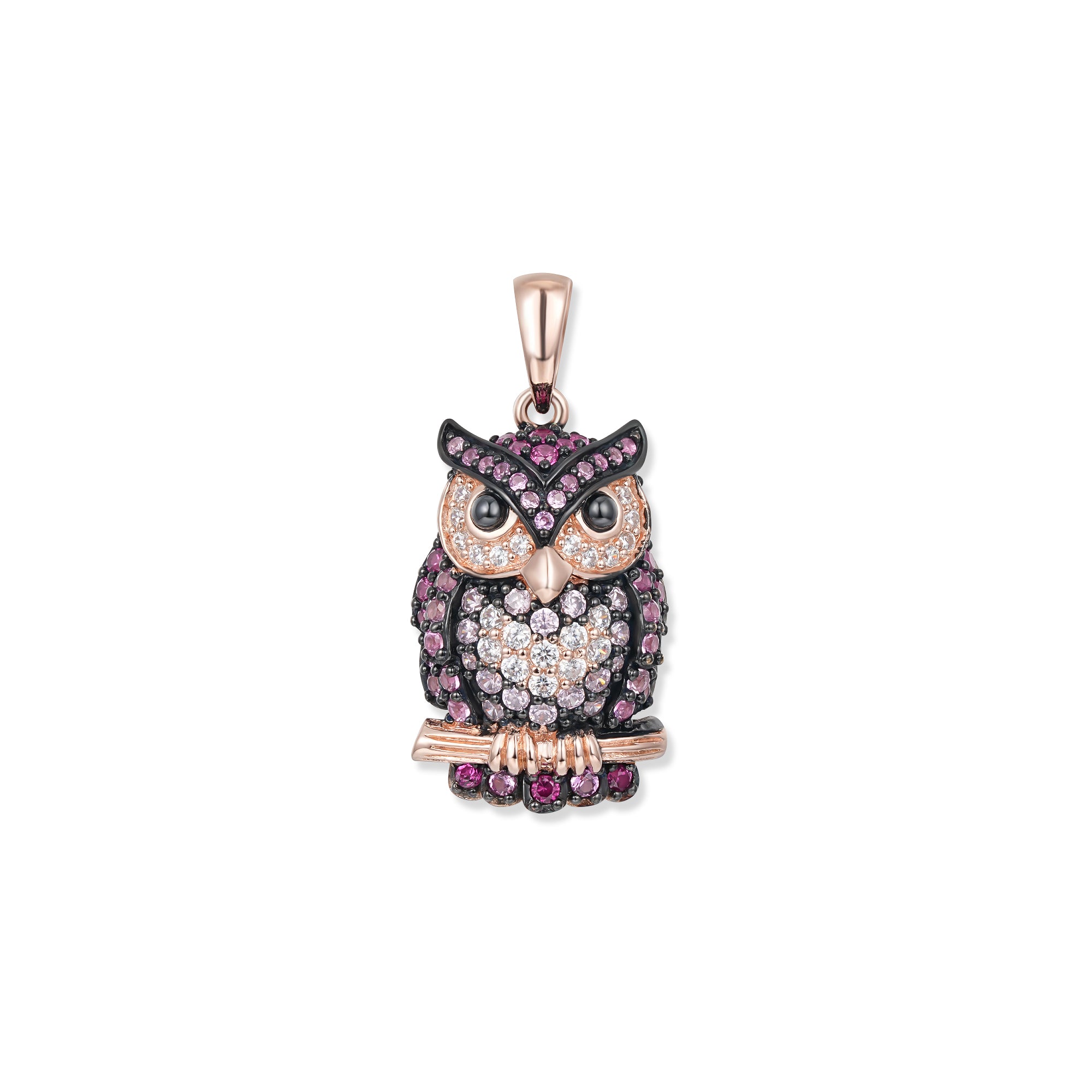 Rosi – die farbenfrohe Eule in 18K Rosévergoldung mit funkelnden Zirkonia, ein natürlich-schönes Pendant zu Arno. Klassisch. Symbolisch. SEINERZEIT Waldleben.