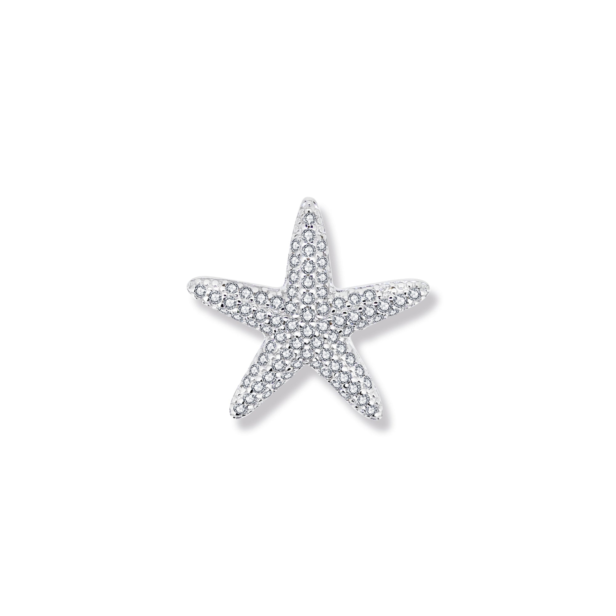 The Celine Seestern pendant in 925 sterling silver is a tribute to the beauty of the ocean. This rhodium-plated pendant is adorned with sparkling white zirconia stones.