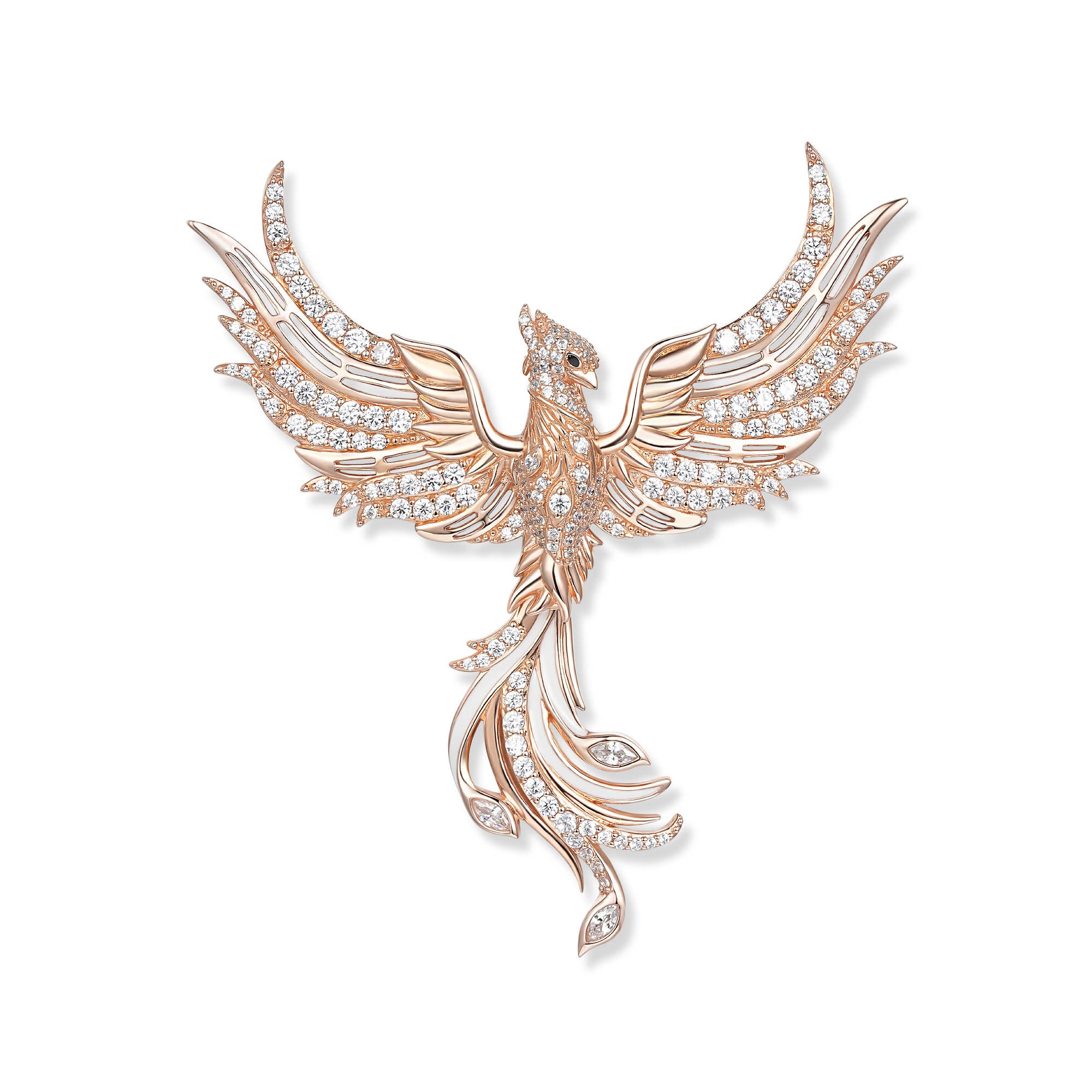 Der Ashara Phönix Anhänger aus 18k rosévergoldetem Sterling Silber, verziert mit funkelnden weißen Zirkonia, ist ein elegantes und majestätisches Schmuckstück aus der SEINERZEIT Dream Kollektion.