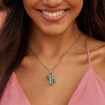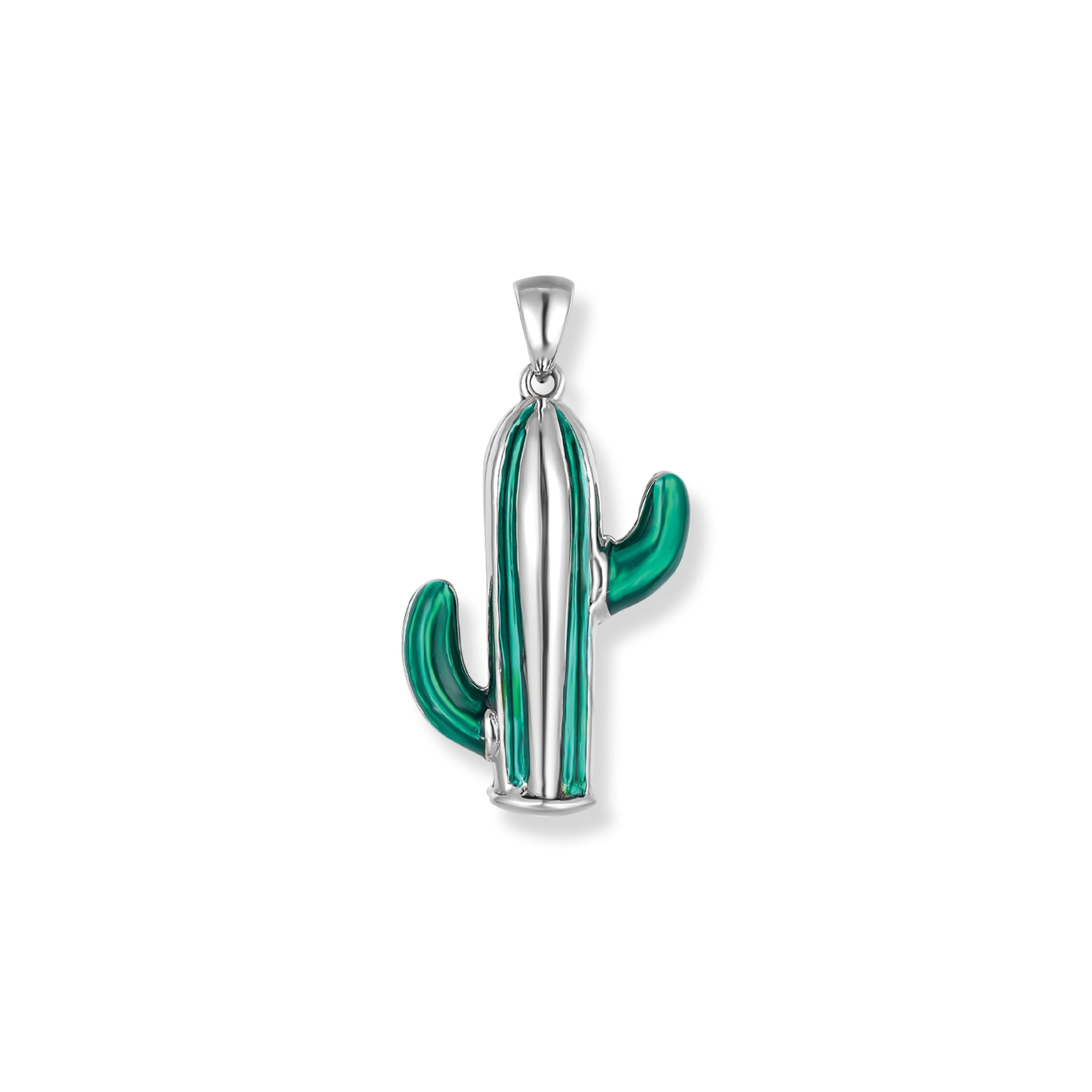 Cancun Kakteen Anhänger, aus feinstem Sterling Silber gefertigt und rhodiniert, lässt mit seiner grünen Emaille den Anhänger in einem frischen Grün erstrahlen. Die grünen Zirkonia im Zentrum setzen funkelnde Akzente und verleihen dem Anhänger eine süße und irgendwie lustige Note. Ein Schmuckstück, das nicht nur grüne Herzen höherschlagen lässt, sondern auch eine Portion Humor in Ihre Kollektion bringt.