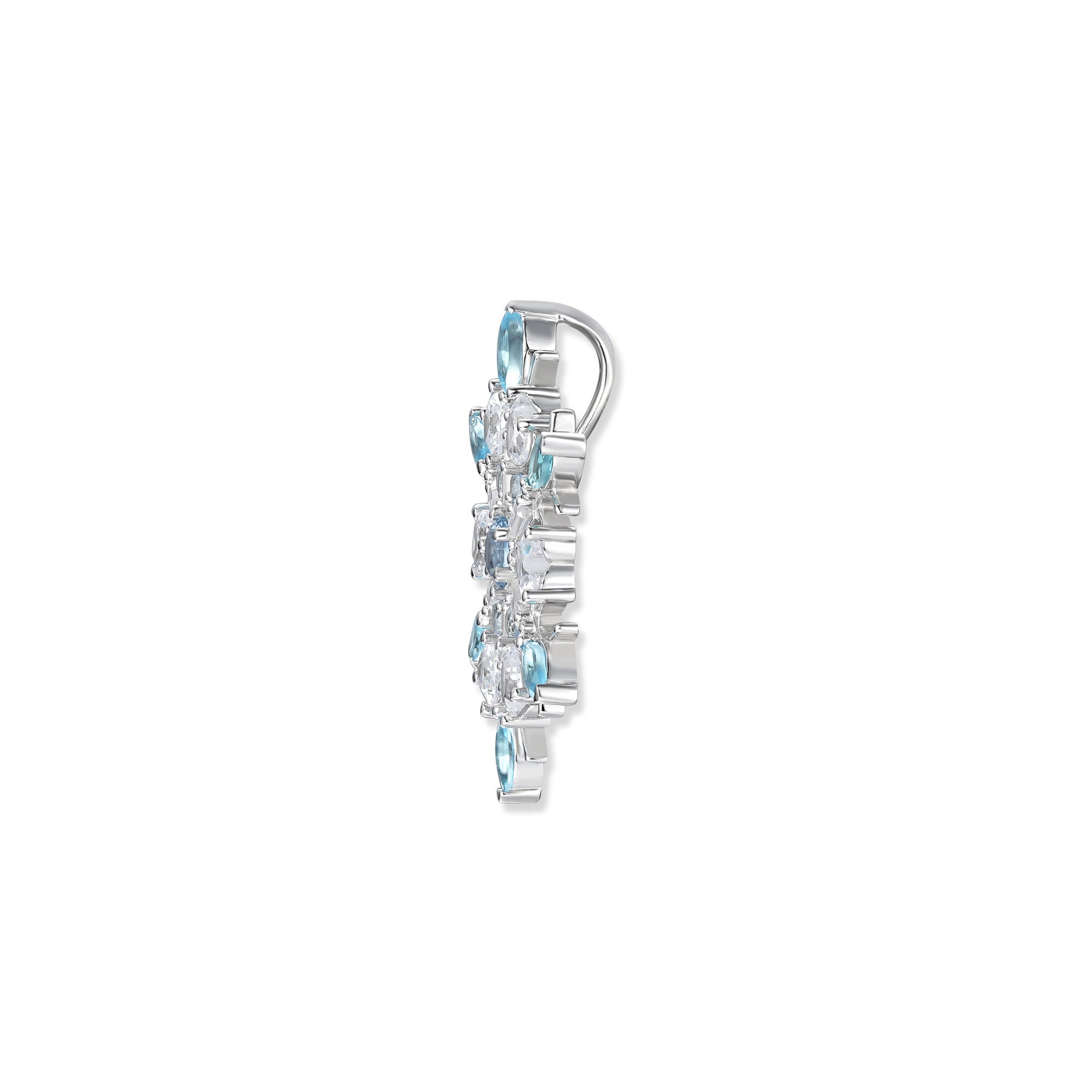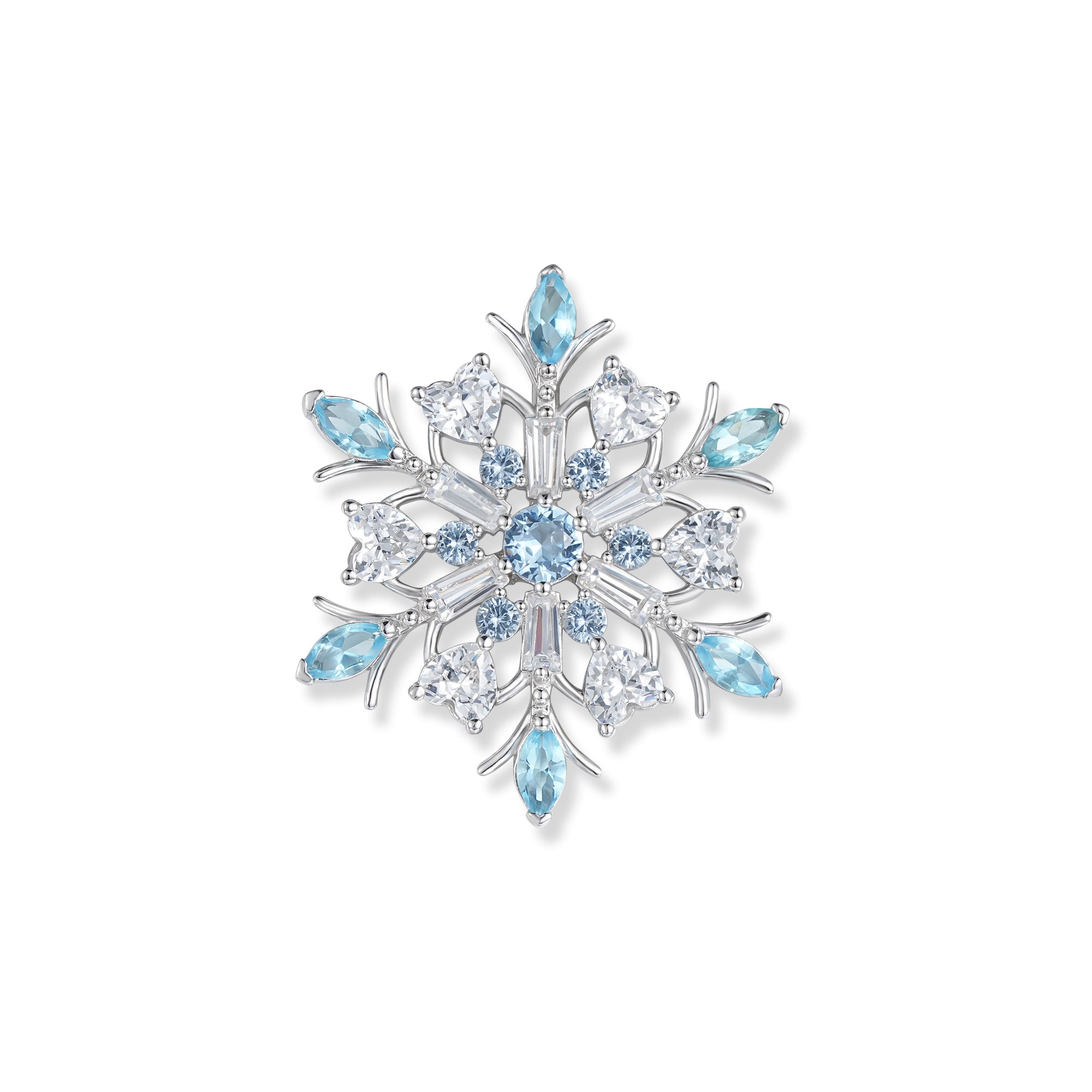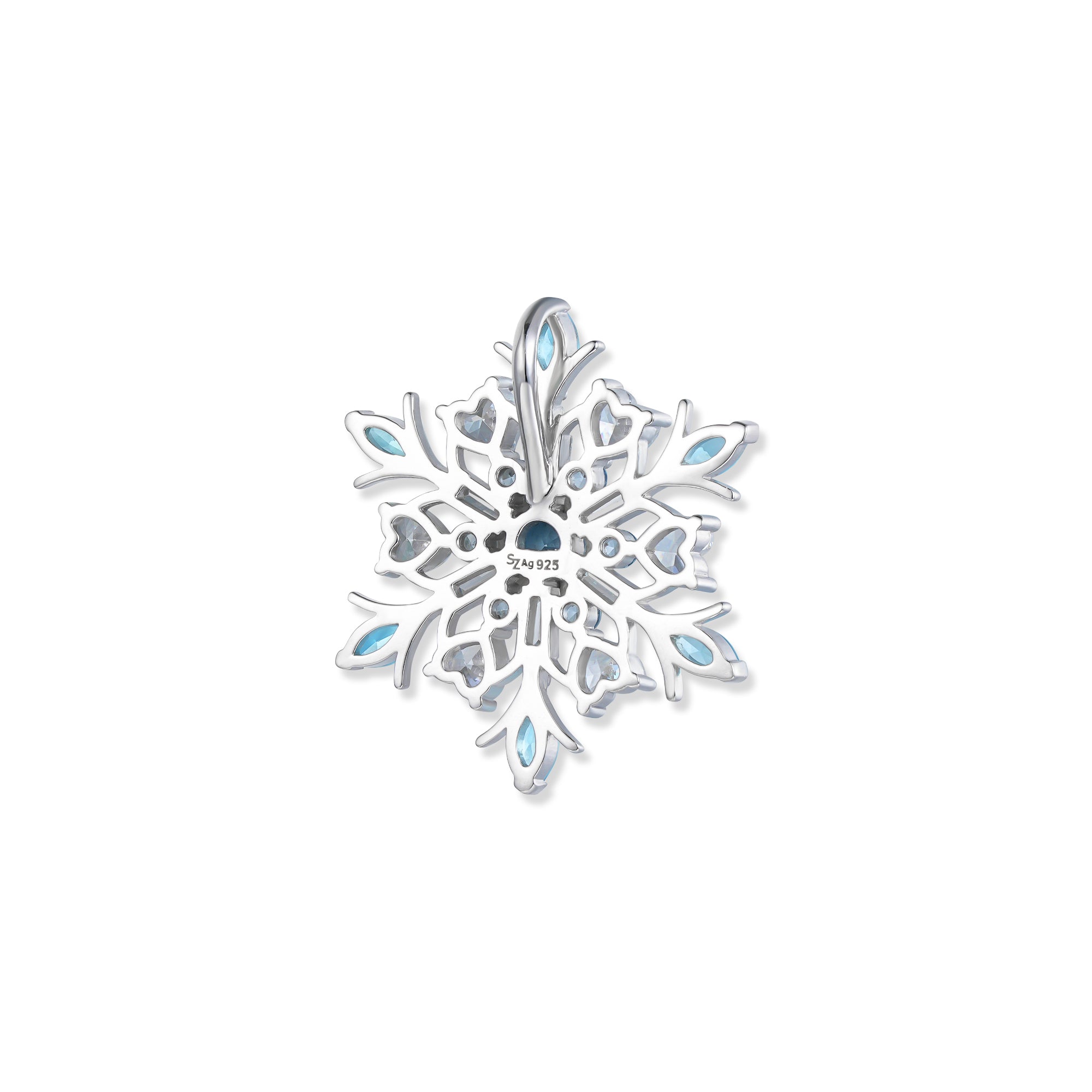 Der Frosty Schneeflocke Anhänger aus rhodiniertem Sterling Silber, verziert mit weißen und hellblauen Zirkonia im Marquise-Schliff, kombiniert filigrane Eleganz mit winterlicher Schönheit. Ein Schmuckstück, das winterlichen Zauber in deine Kollektion bringt.