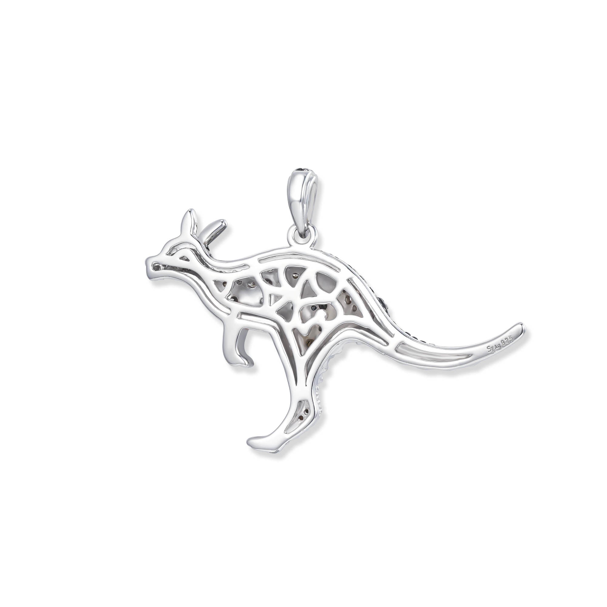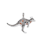 Der Gangu Känguru Anhänger aus Sterling Silber, verziert mit braunen Zirkonia, brauner Emaille und kunstvollen Aborigines-inspirierten Ornamenten, verbindet die Schönheit Australiens mit traditioneller Kultur in einem eleganten Schmuckstück.
