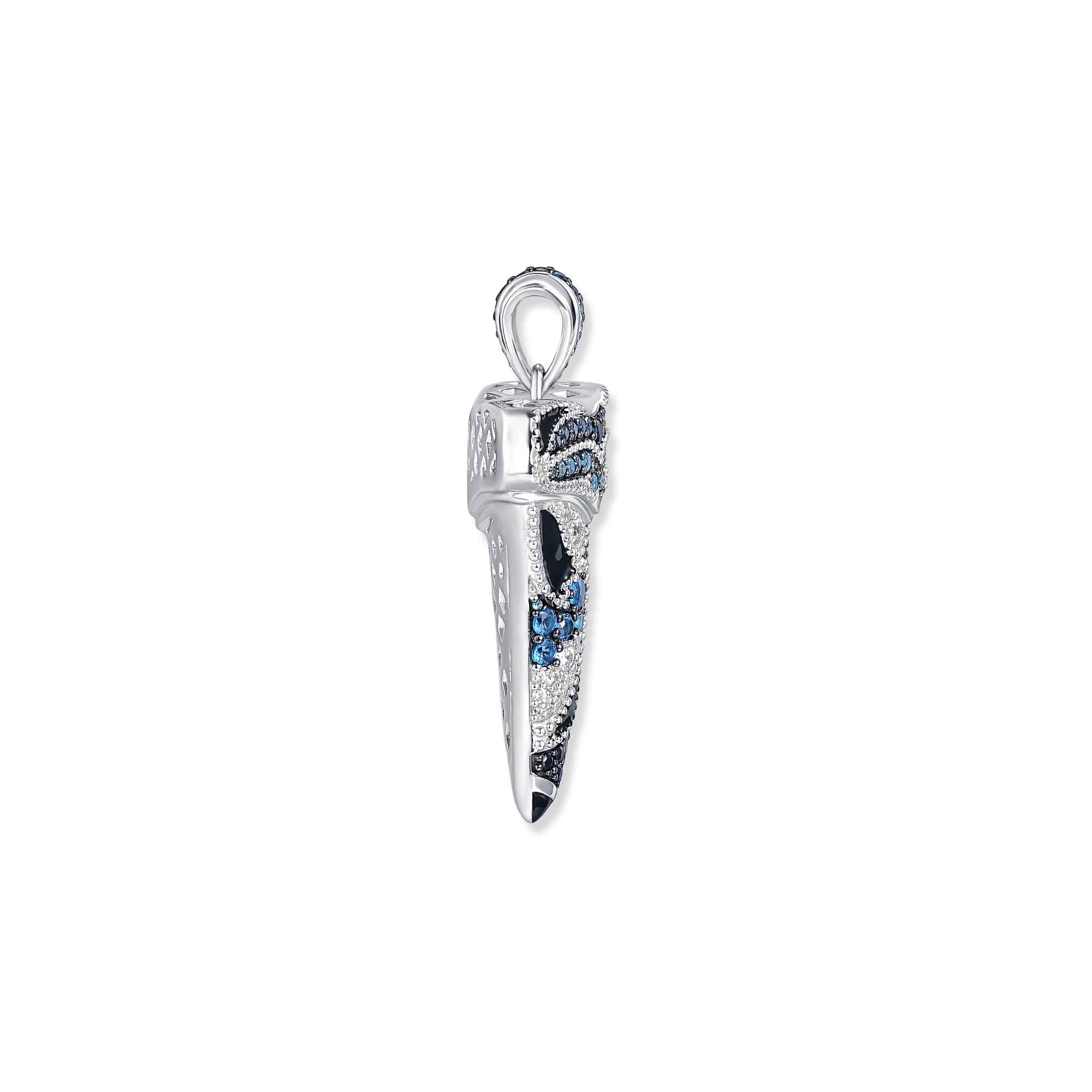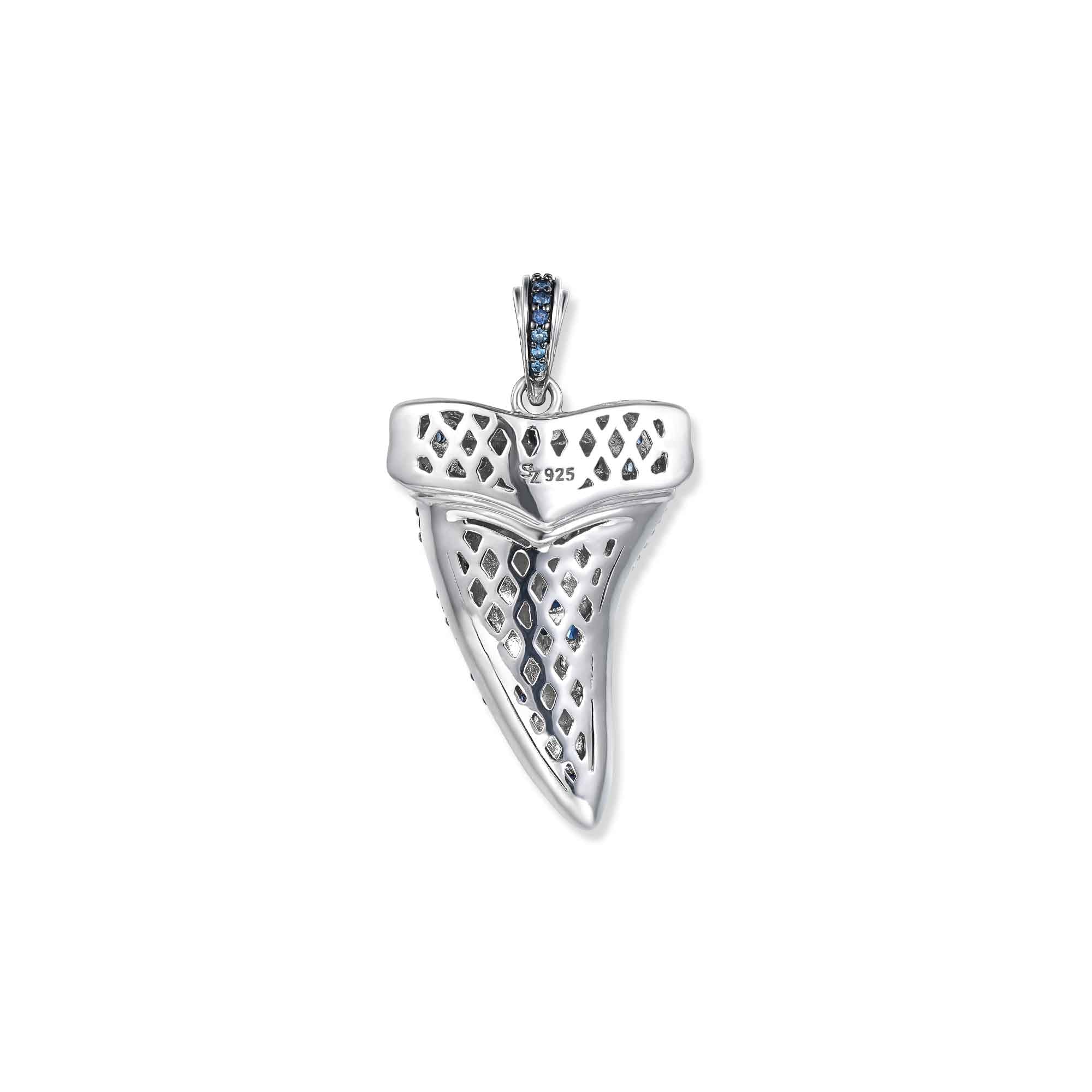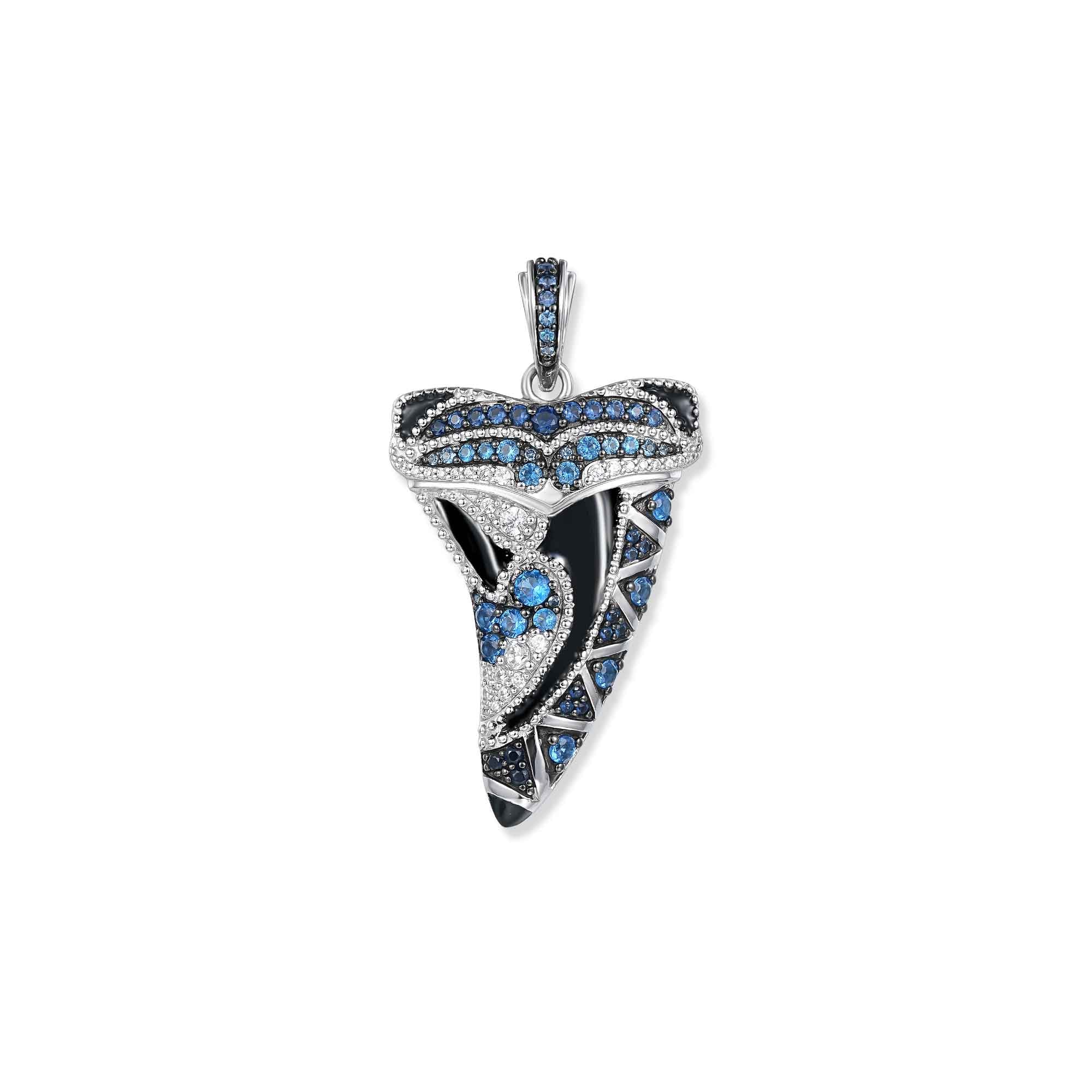 Der Mako Haizahn Anhänger aus rhodiniertem Sterling Silber, verziert mit Zirkonia in Schwarz, Weiß und Blau sowie schwarzer Emaille, präsentiert ein kunstvolles maritimes Muster. Dieser Anhänger gehört zur exklusiven Wasserwelten-Kollektion von SEINERZEIT und ergänzt perfekt weitere Produkte wie Harold und Raymond.