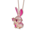 Ms. Roxy Anhänger, Design Award Gewinnerin 2024 ist aus 925 Sterling Silber gefertigt und mit 18K Rosévergoldung überzogen, besticht durch subtilen Glamour. Das markante Design mit einer pinkfarbenen Sonnenbrille und einem vollbesetzten Körper aus rosafarbenen Zirkonia verleiht diesem exklusiven Schmuckstück einen einzigartigen Charme.