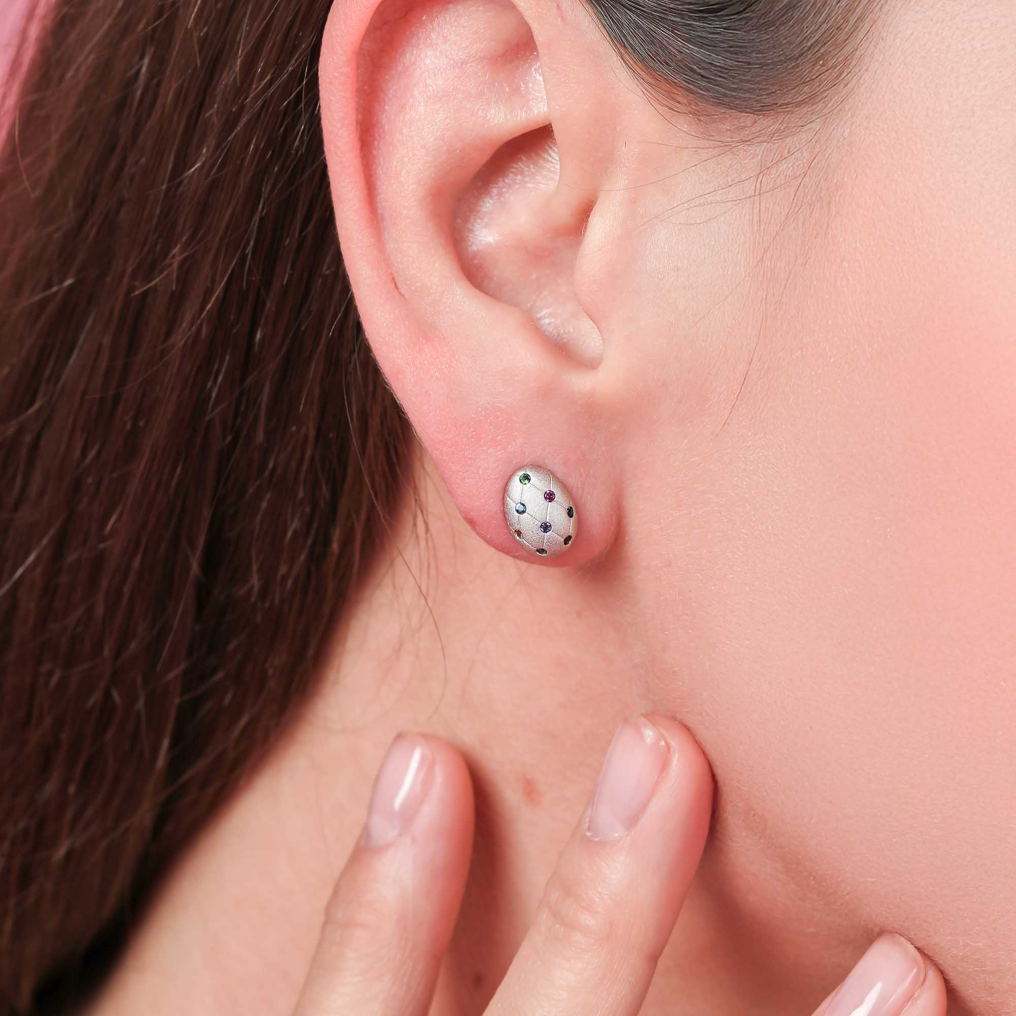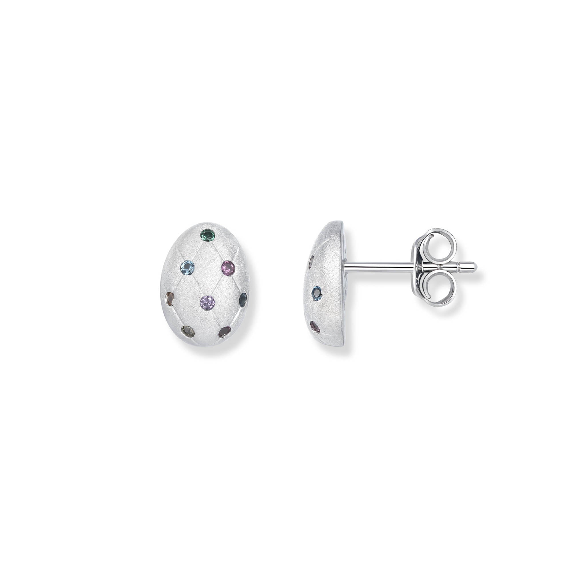 Die Pip Küken Ohrstecker aus rhodiniertem Sterling Silber mit farbigen Zirkonia sind ein elegantes und verspieltes Accessoire, das das einzigartige Design des Pip Küken Anhängers perfekt ergänzt.