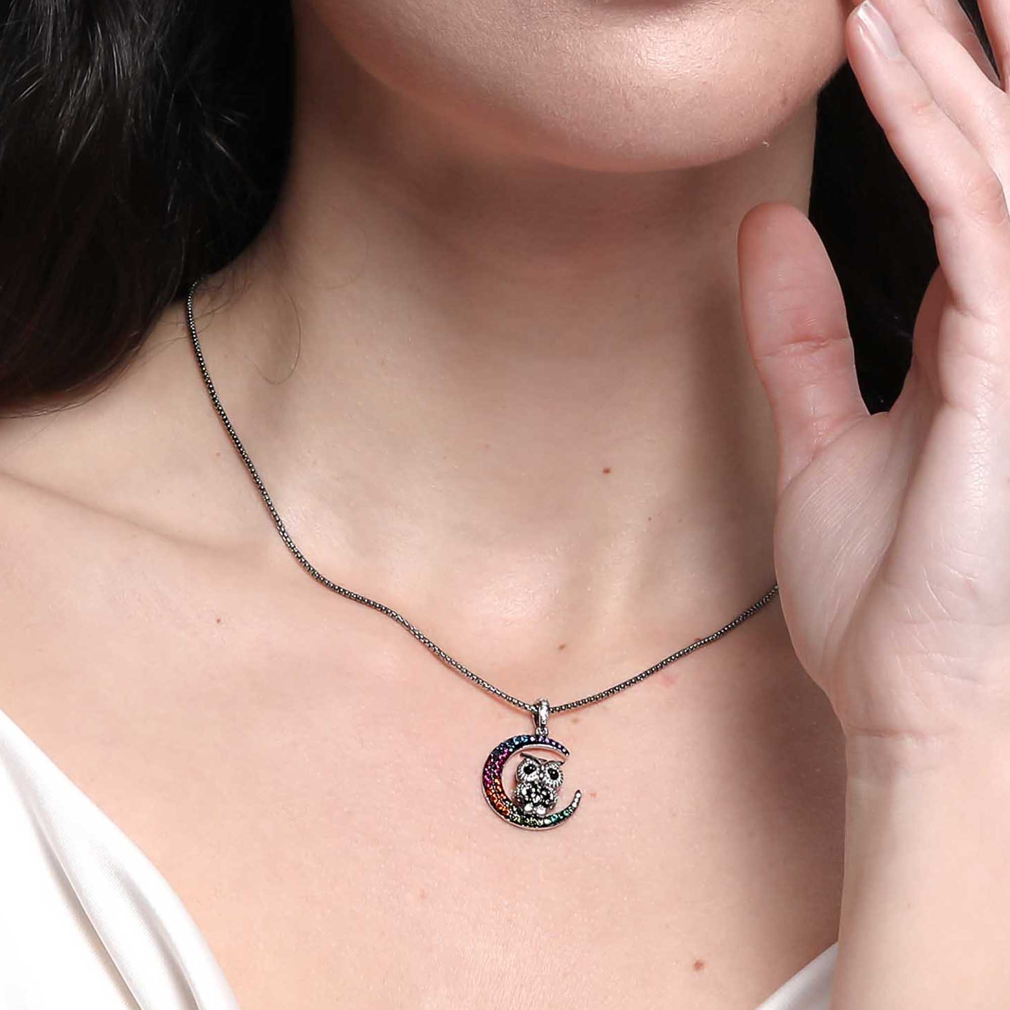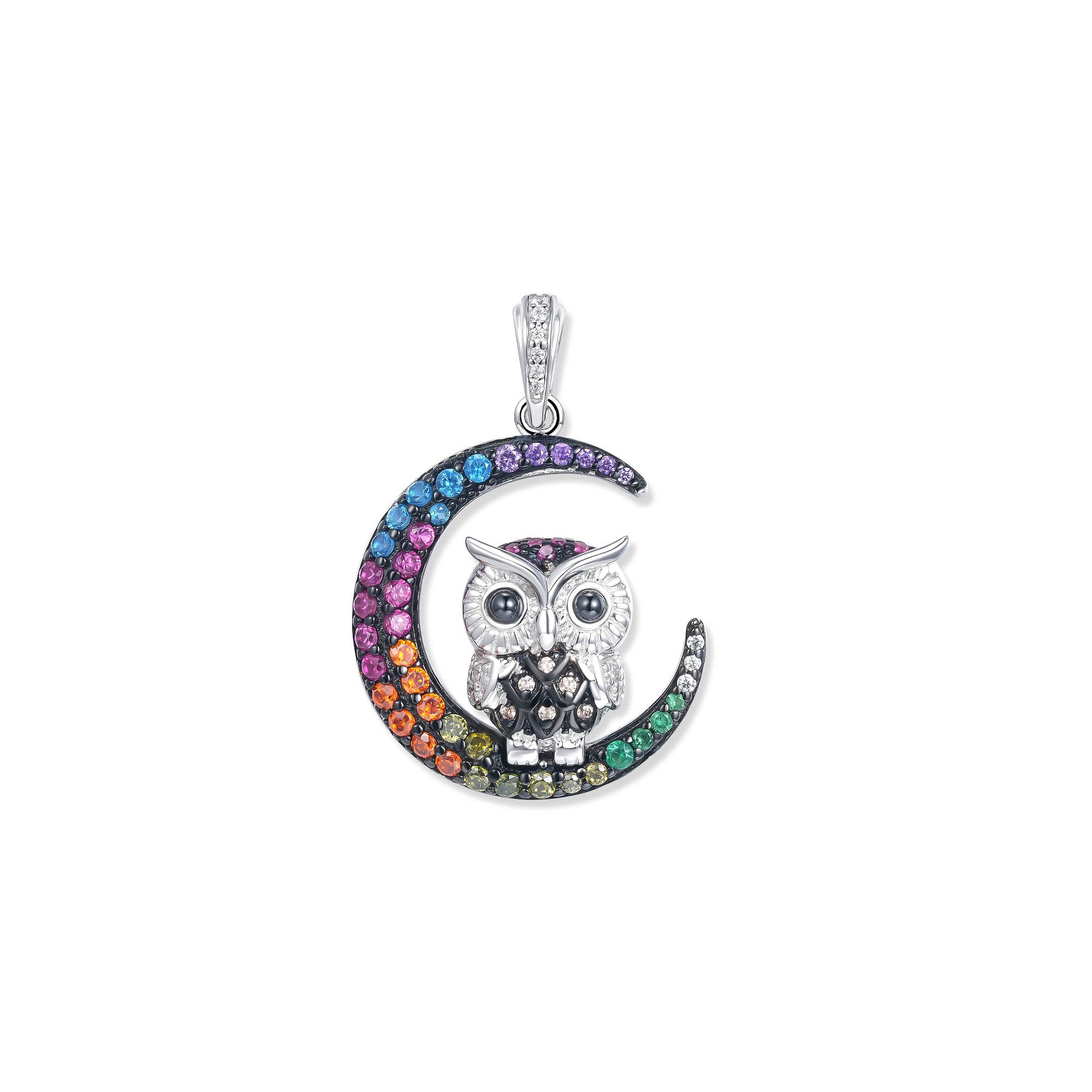 Der Prisma Eulen Anhänger aus Sterling Silber, verziert mit funkelnden, regenbogenfarbenen Zirkonia, verbindet Symbolik und Eleganz. Ein Schmuckstück, das Weisheit, Schutz und Individualität ausdrückt.