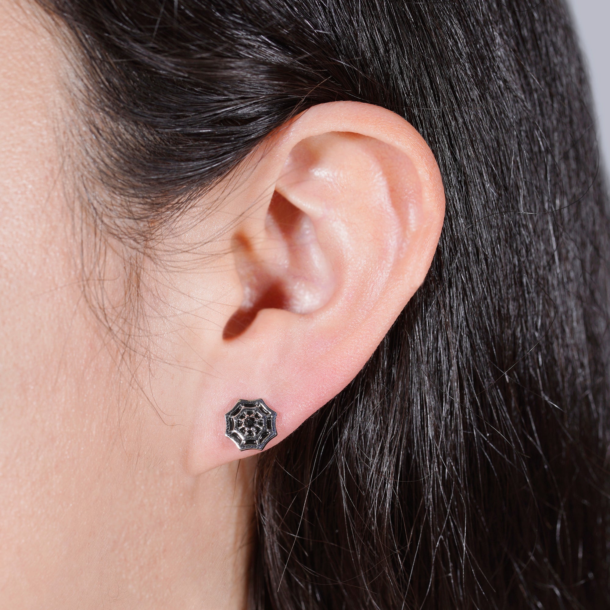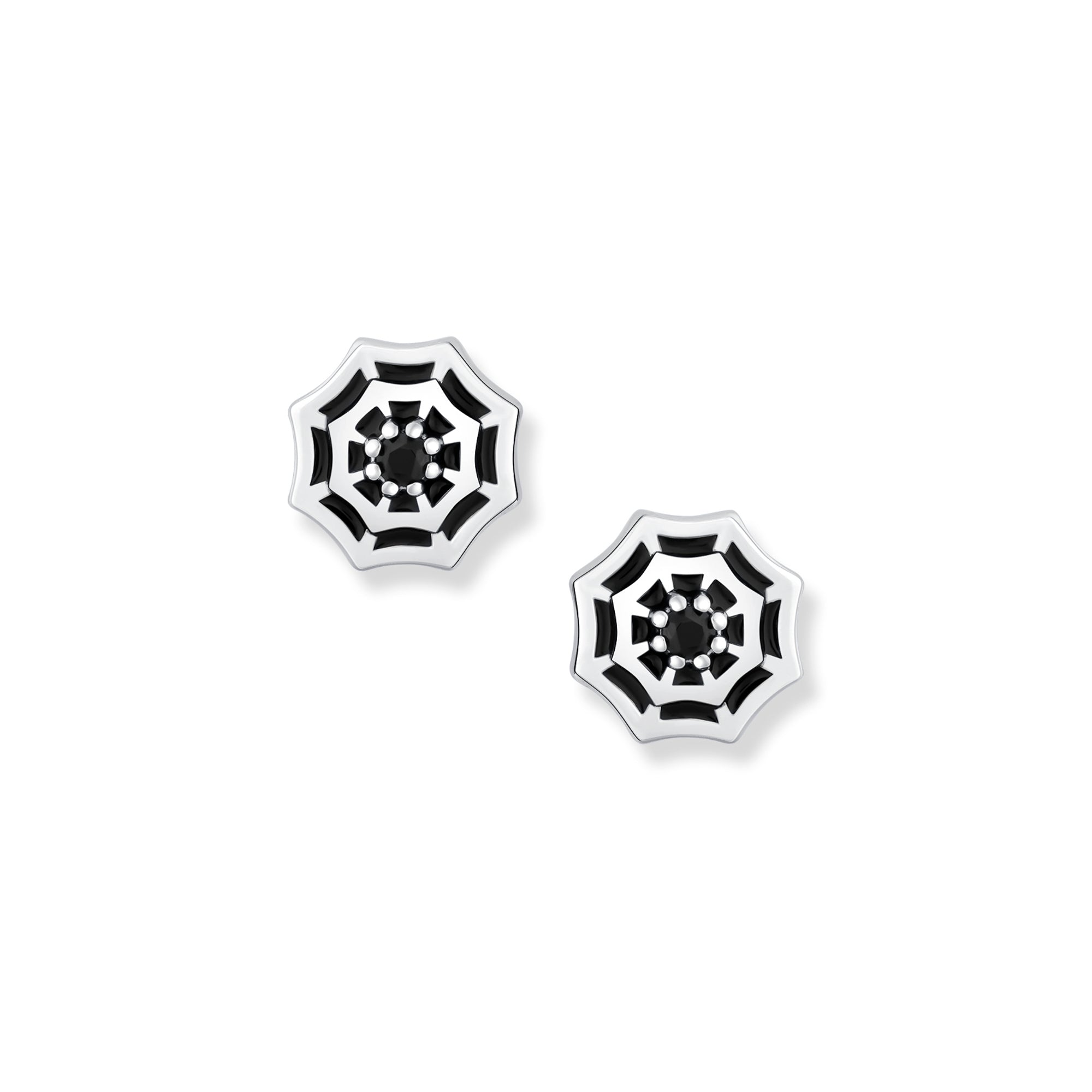 Die Dante Spinnennetz Ohrringe fangen die geheimnisvolle Schönheit der Nacht in einem kunstvollen Design ein. Ein filigranes Spinnennetz mit schwarzer Emaille, raffiniert von Silberdetails. Das Herzstück des Spinnennetzes wird von einem funkelnden schwarzen Zirkonia gekrönt.