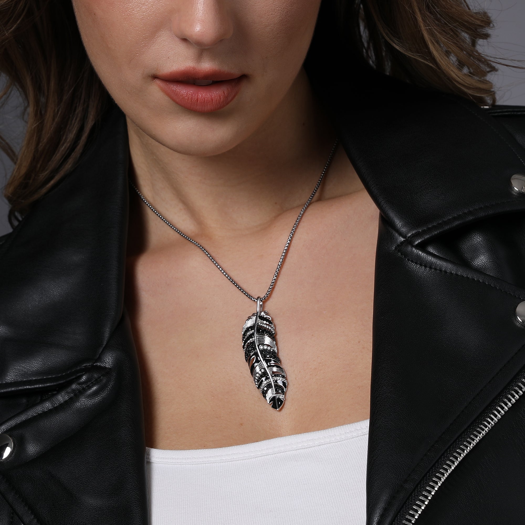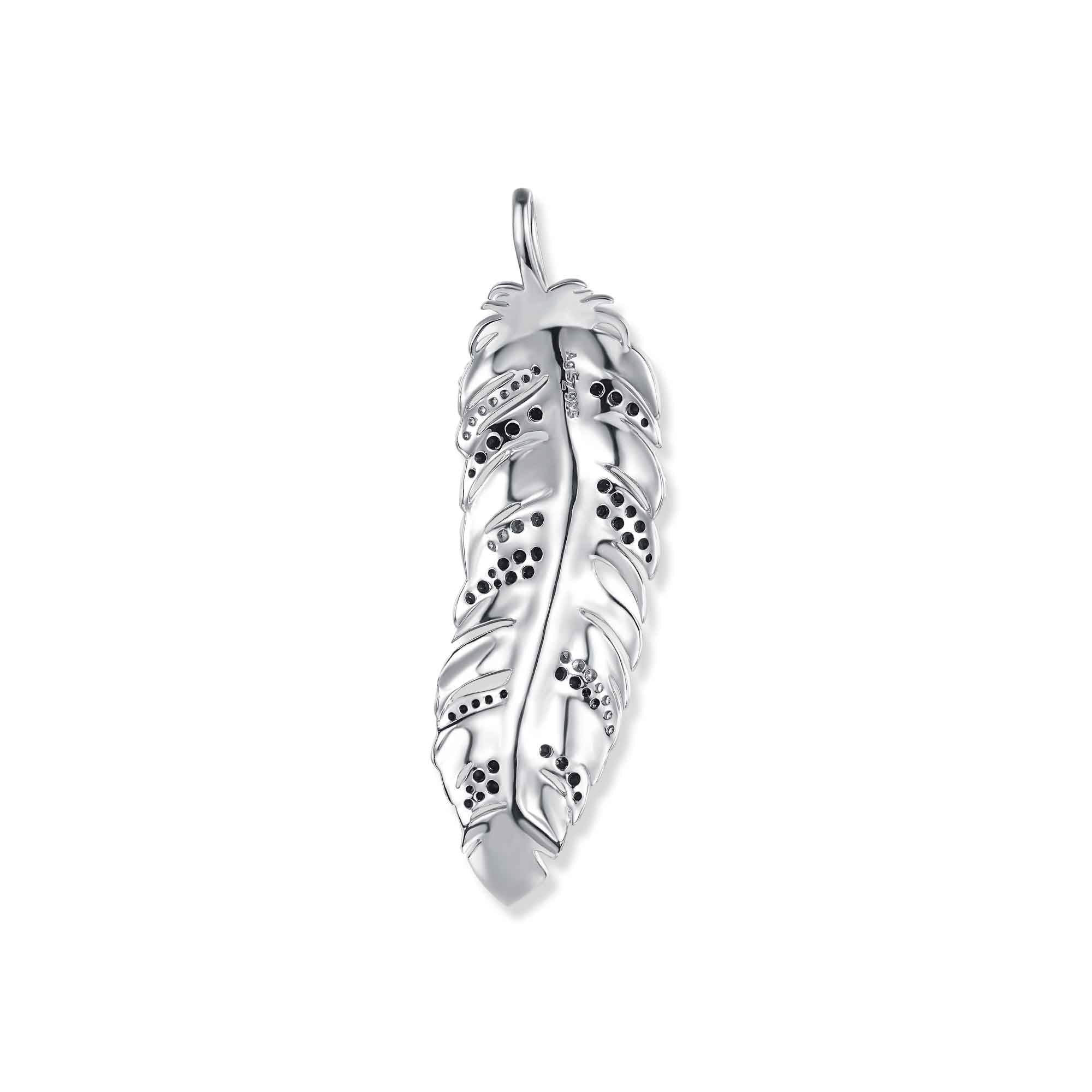 Entdecke den Fidor Feder Anhänger aus rhodiniertem Sterling Silber mit schwarzen Zirkonia und schwarzer Emaille. Elegant und mysteriös, passend zum Adler Anhänger.