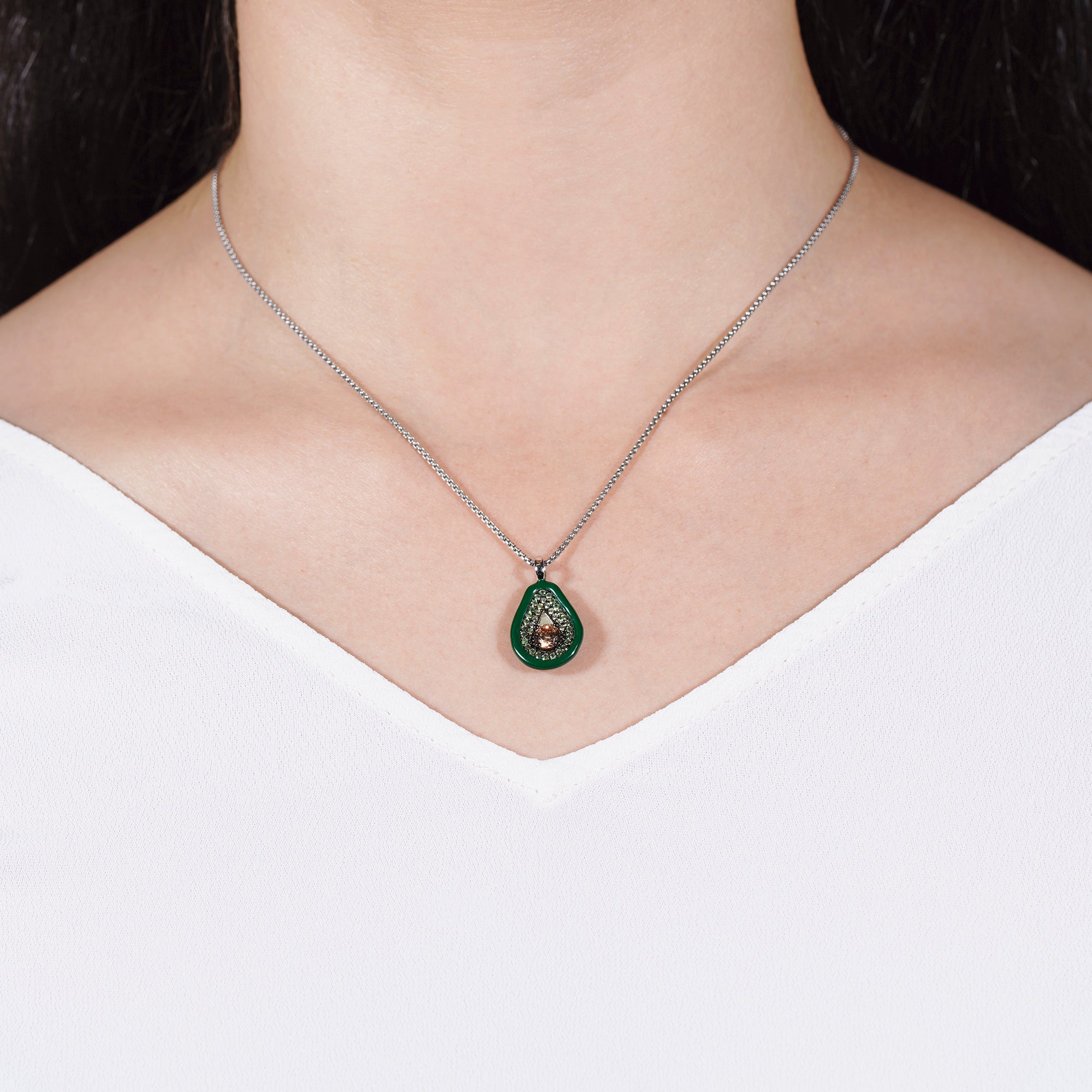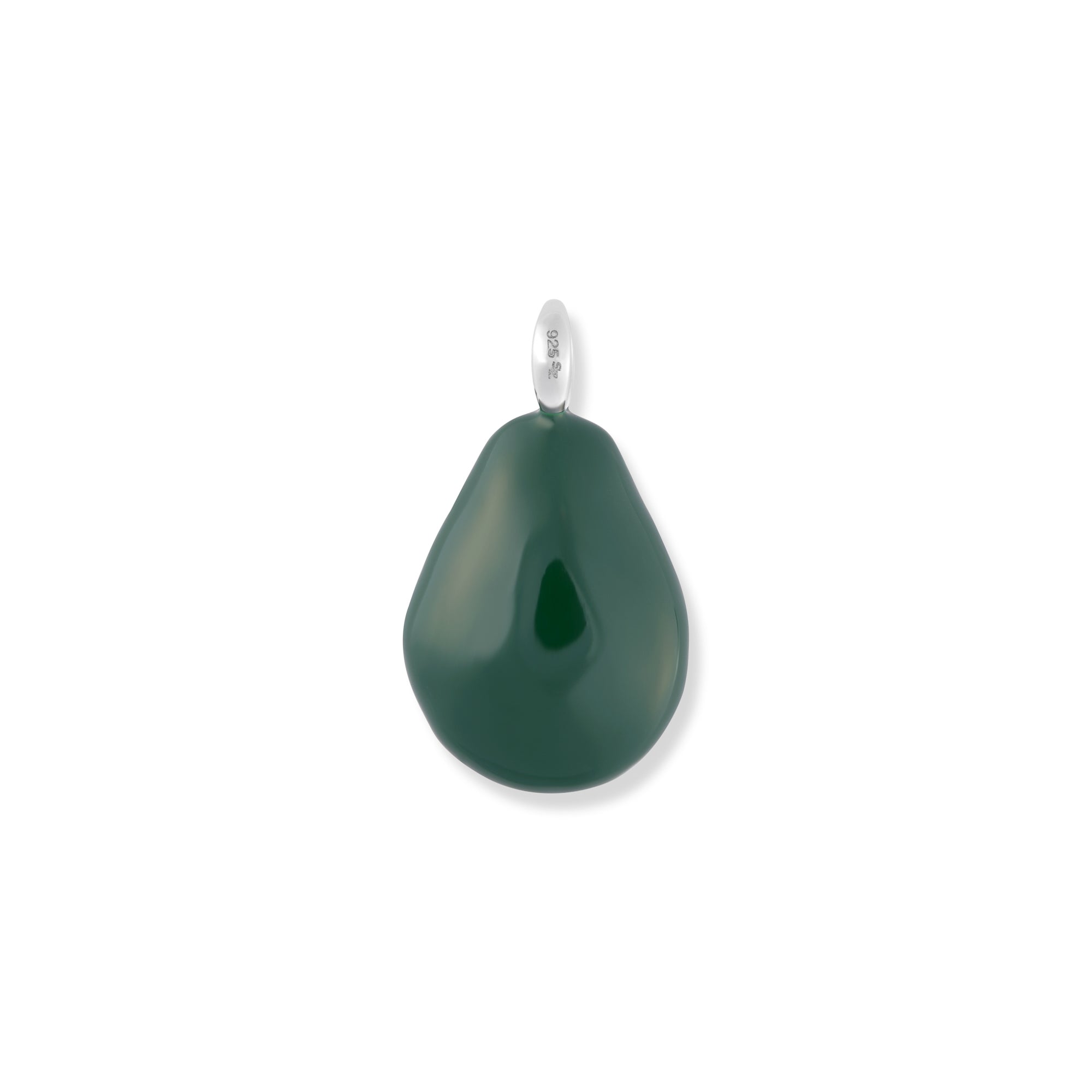 Avo Avocado Anhänger in 925 Sterling Silber, rhodiniert und mit grünen Zirkonia verziert, ist ein trendiger und verspielter Anhänger.