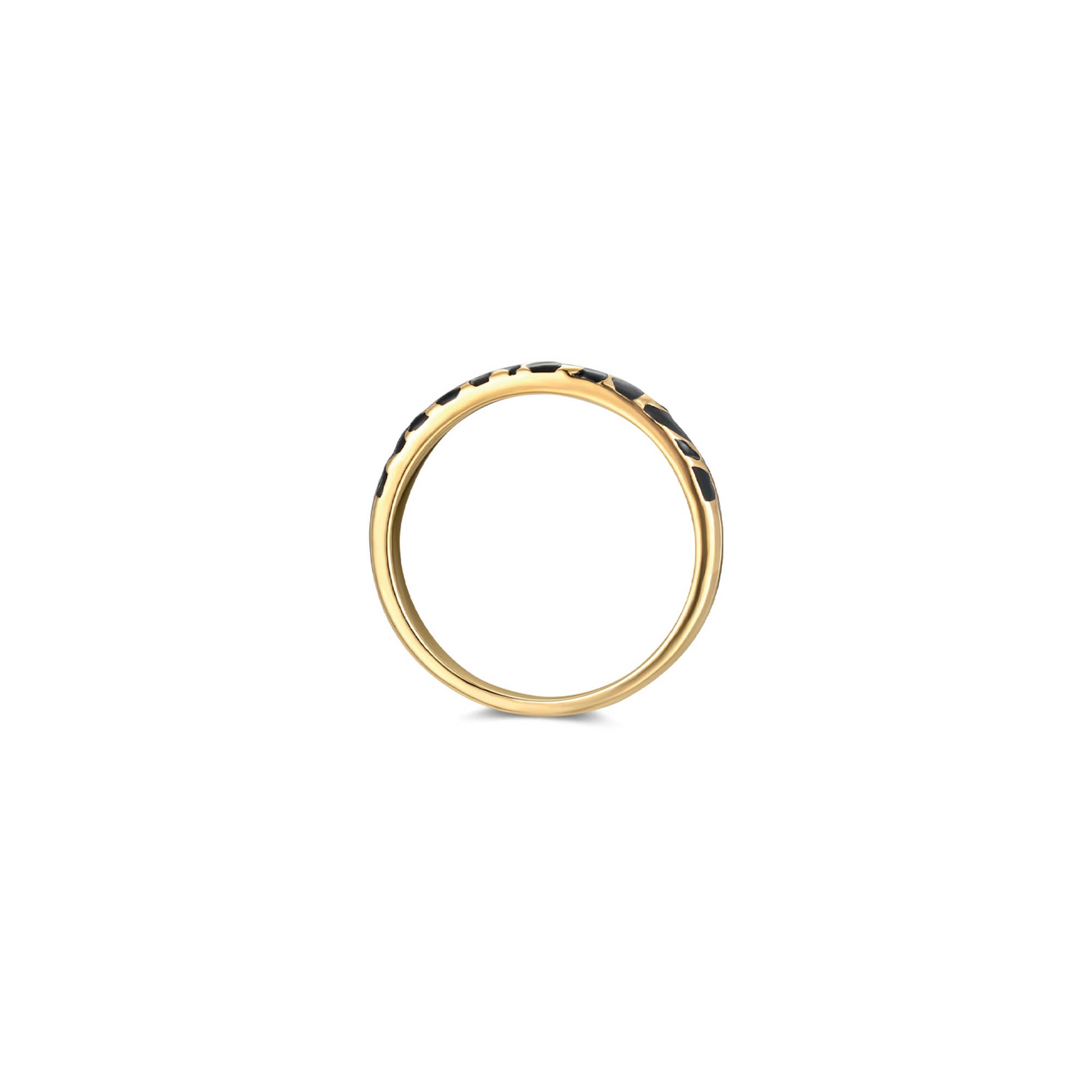 Der Kiani Leoparden Ring aus 925 Sterling Silber mit 18 K Vergoldung besticht durch das Leopardenmuster in schwarzer Emaille. Als Inlay-Steckring für den passgenauen Profilring Sunshine oder Moonshine mit weißen Zirkonia bildet er eine harmonische Symbiose. Auch solo getragen ist der Kiani Ring eine wunderbare Ergänzung zum gesamten Kiani Set.