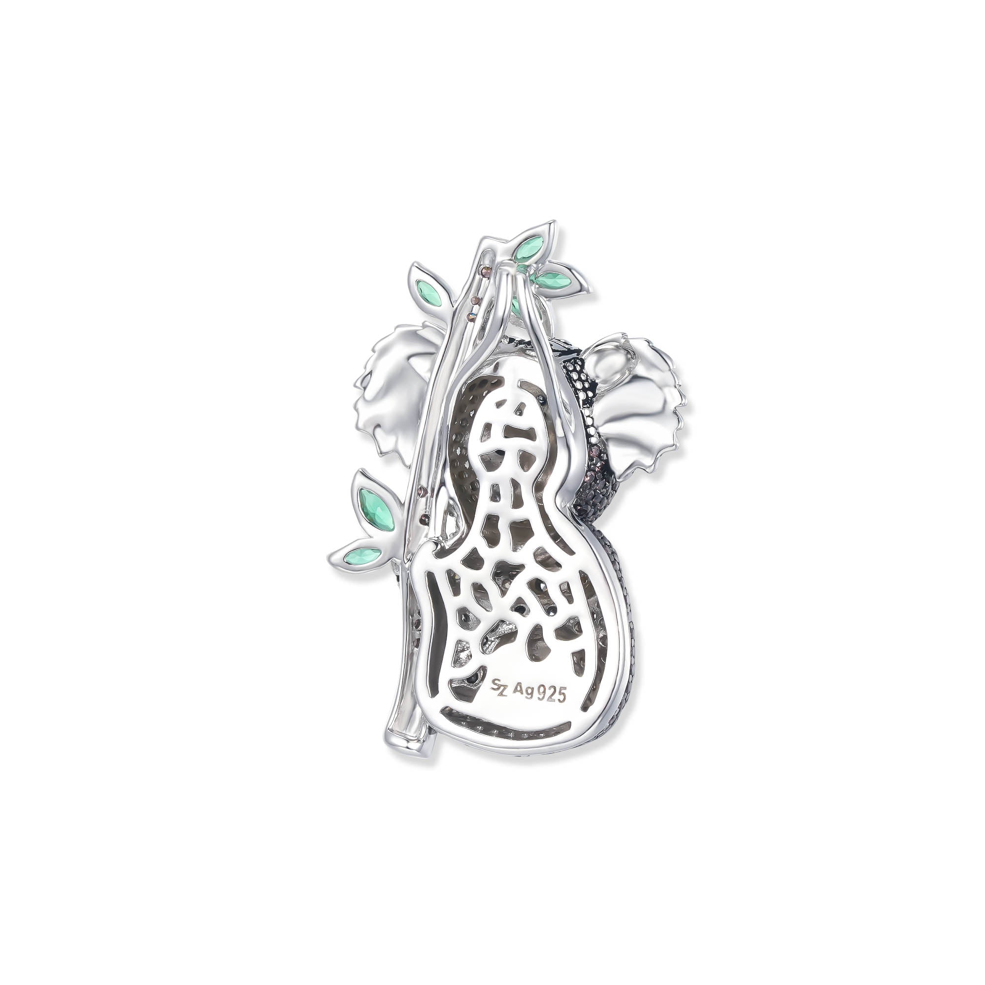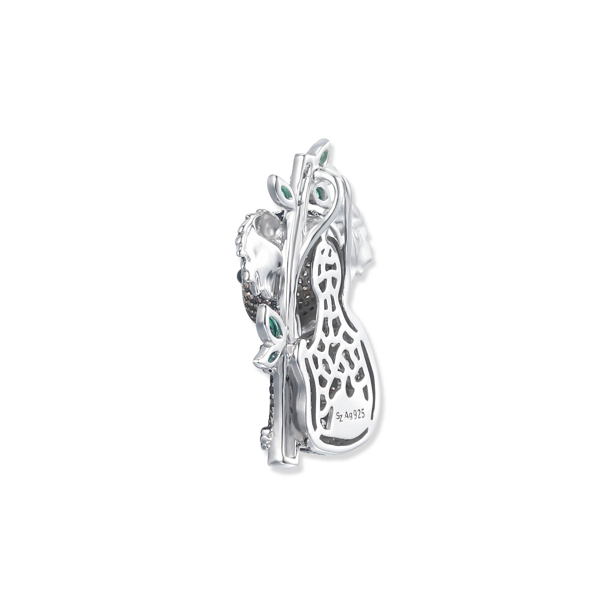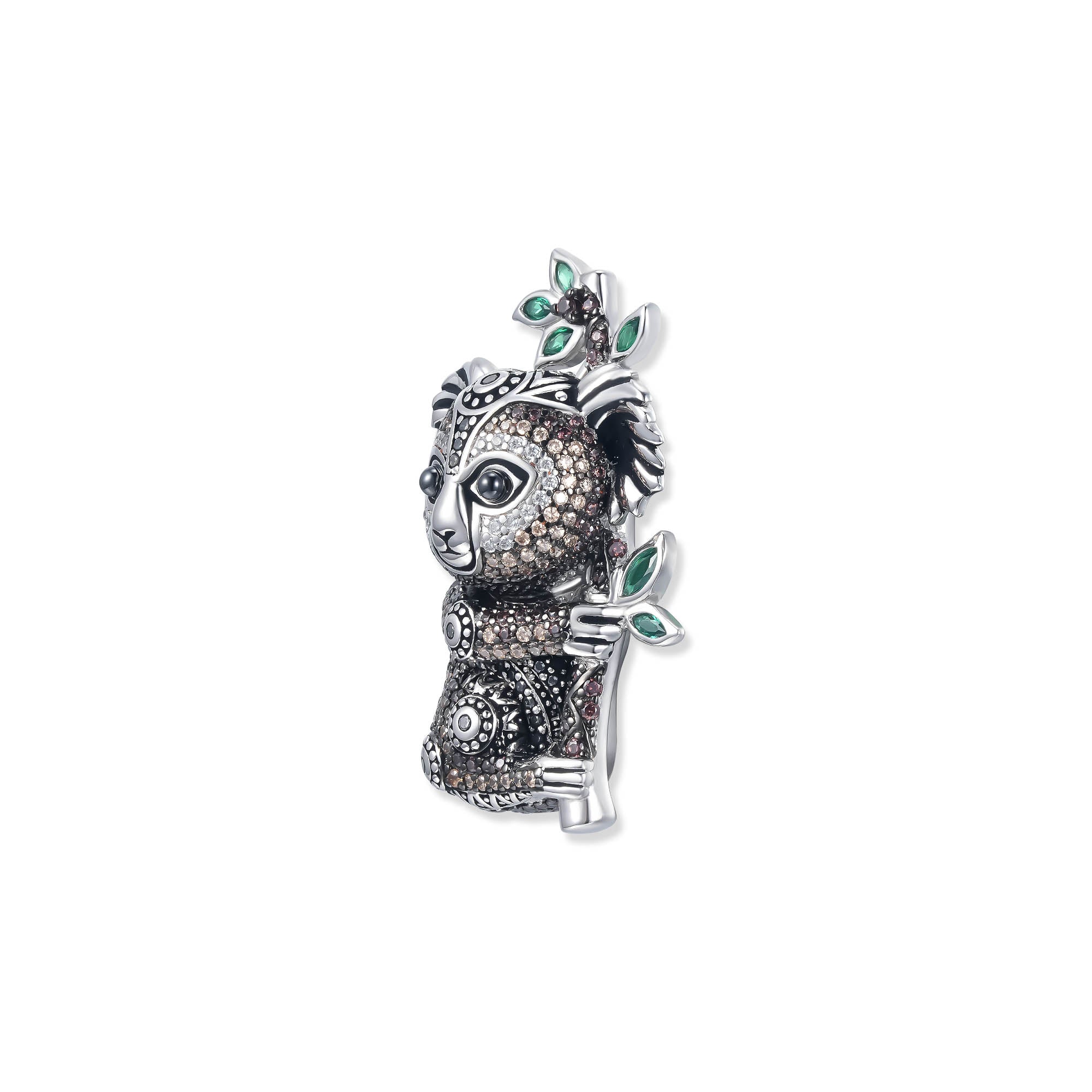 Der Kula Koala Anhänger aus Sterling Silber, verziert mit braunen und weißen Zirkonia sowie grünen Marquise-Schliff Zirkonia, bringt den verspielten Charme des australischen Koalas in ein einzigartiges Schmuckstück. Teil der SEINERZEIT Flora & Fauna Kollektion.