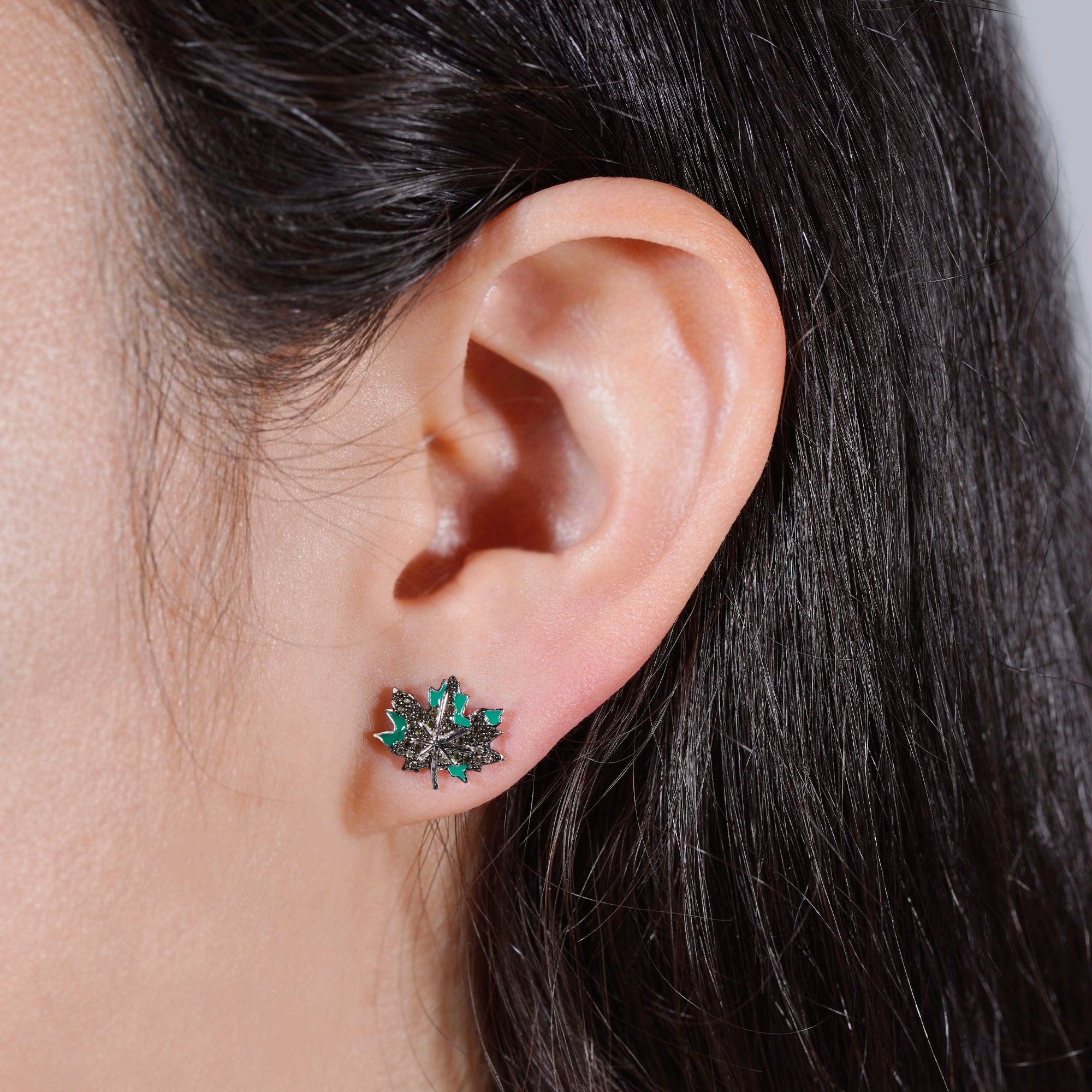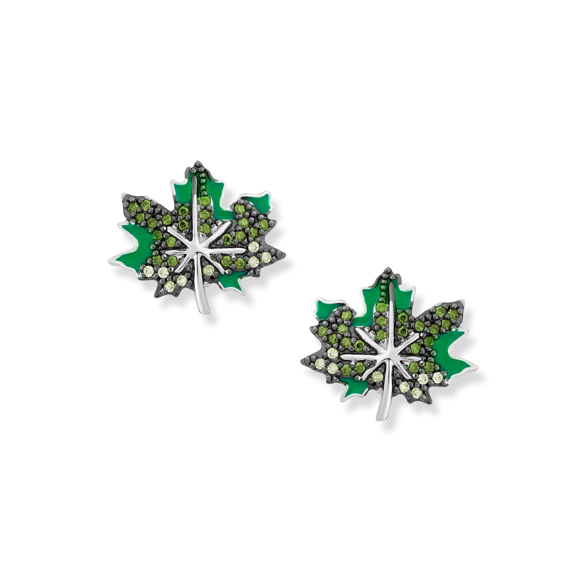 Ashley Ahornblatt Ohrringe in 925 Sterling Silber, rhodiniert, mit grüner Emaille und grünen Zirkonia sind stilvolle Ohrschmuckstücke.
