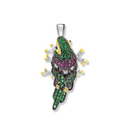 Der Antoine Papagei Anhänger verkörpert die faszinierende Schönheit der Tropen. Aus hochwertigem 925 Sterling Silber gefertigt, ist er rhodiniert, geschwärzt und vergoldet. Die lebendigen grünen und gelben Zirkonia Steine verleihen diesem Anhänger eine lebendige und exotische Ausstrahlung.
