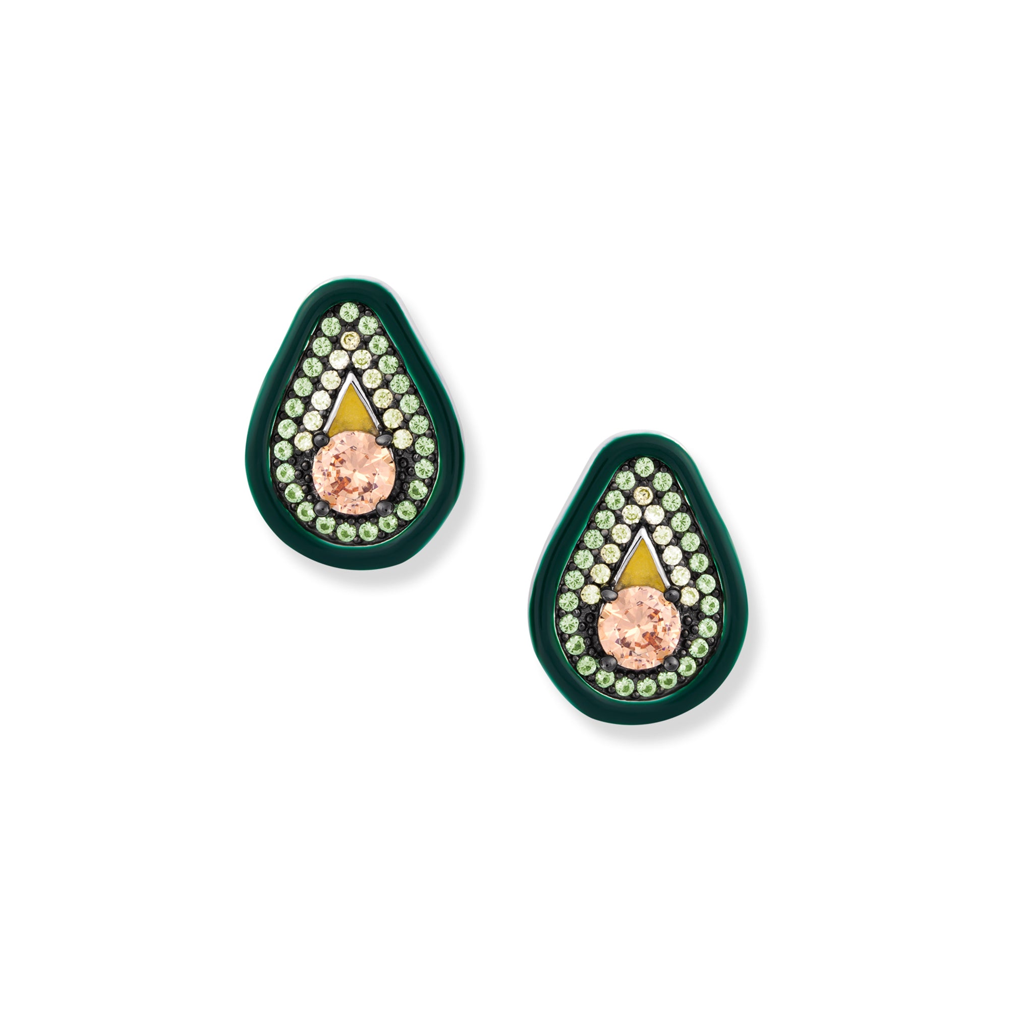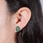 Avo Avocado Ohrstecker in 925 Sterling Silber, rhodiniert und mit grünen Zirkonia verziert, sind süße und verspielte Ohrstecker.