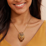 Der Richard Löwen Anhänger/Brosche kombiniert kraftvolles Silber 925'er mit eleganter Vergoldung und kunstvoller Emaille-Verzierung für einen majestätischen Look.