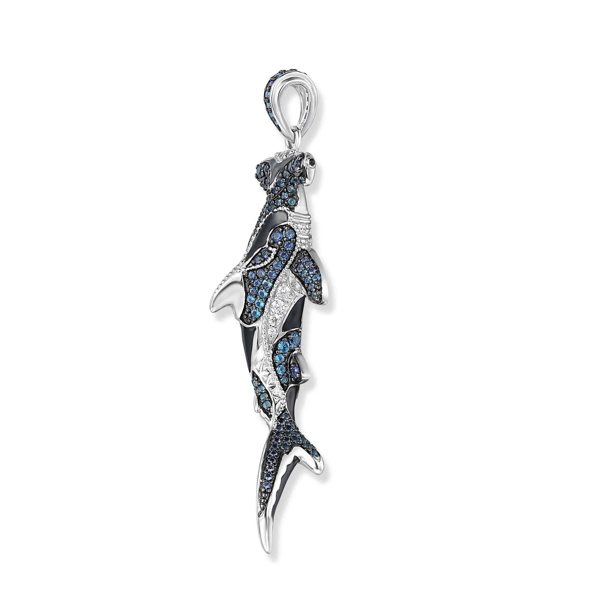 Der Harold Hammerhai Anhänger aus rhodiniertem Sterling Silber, verziert mit weißen und blauen Zirkonia sowie schwarzer Emaille, vereint majestätisches maritimes Design mit harmonischer Eleganz. Teil der exklusiven Kollektion von SEINERZEIT bringt dieser Anhänger die faszinierende Schönheit des Meeres in dein Schmuckkästchen.