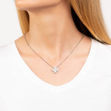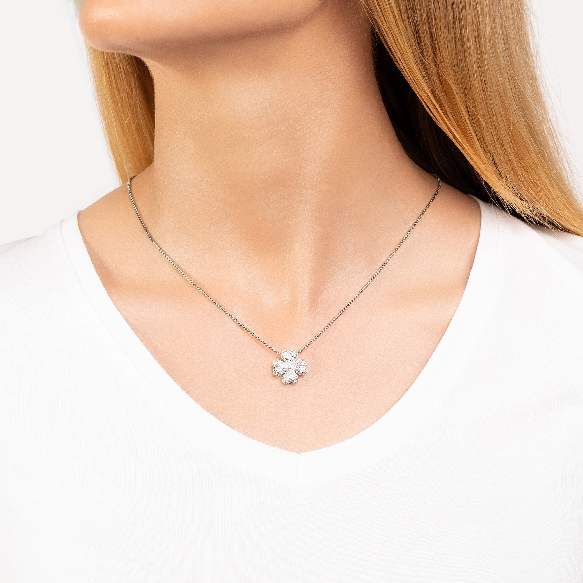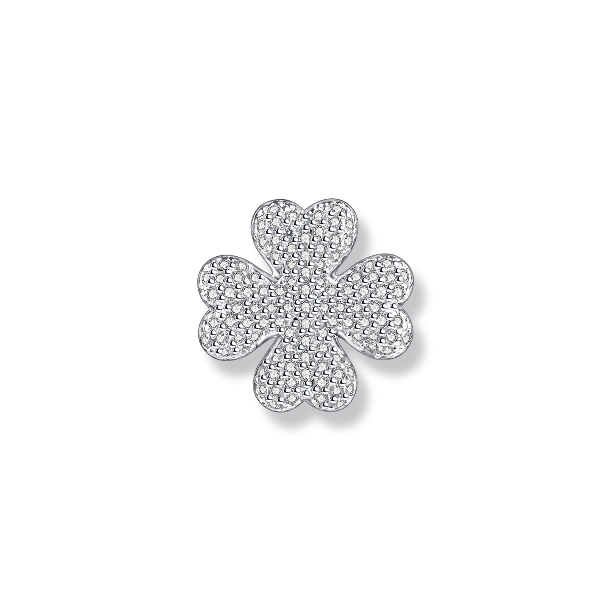 Unser Clover Kleeblatt Anhänger aus 925 Sterling Silber strahlt mit weißen Zirkonia Steinen Glück und Eleganz aus.