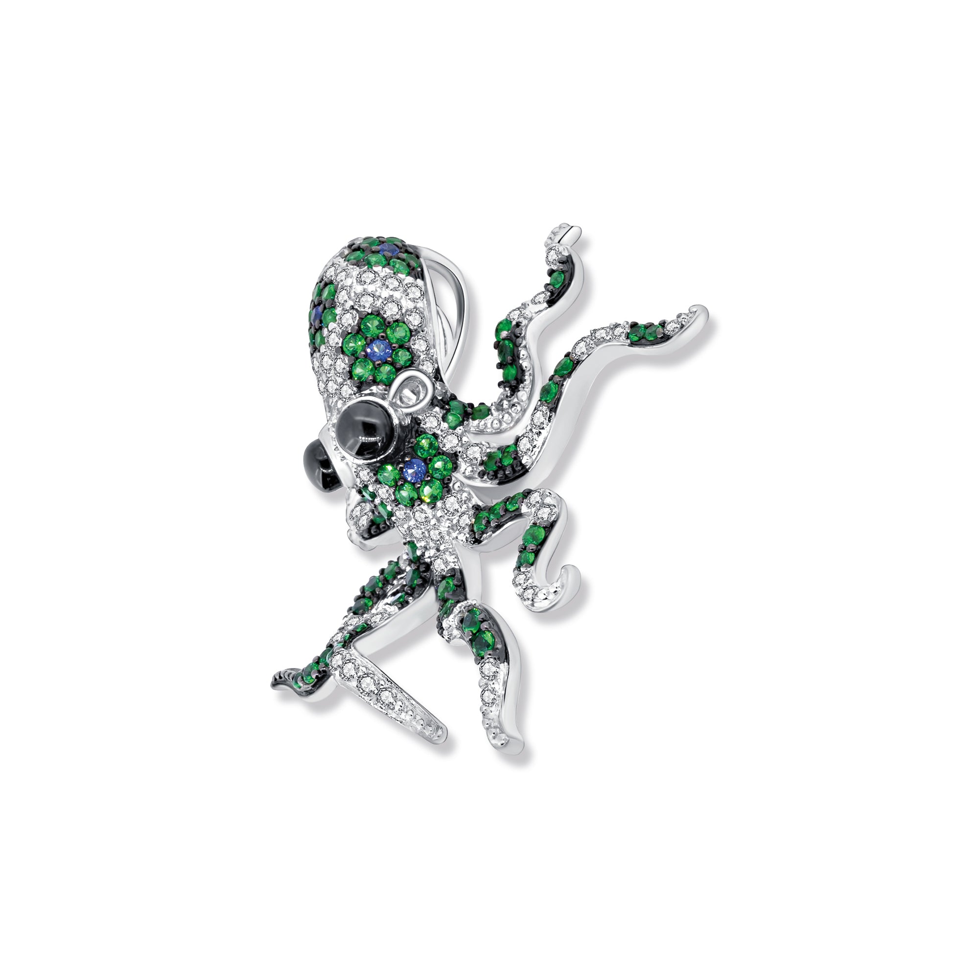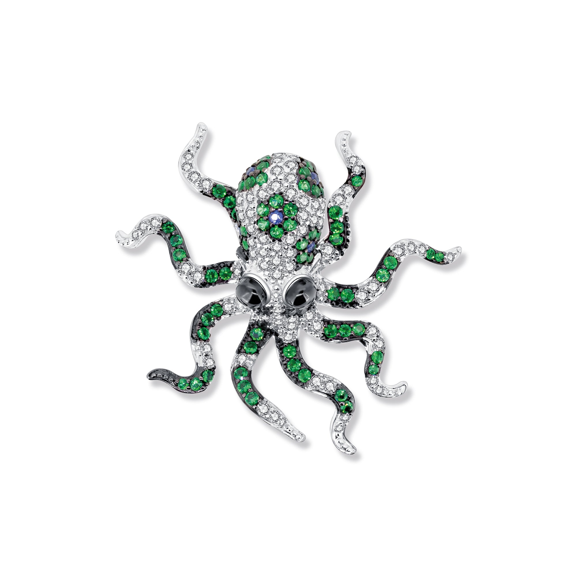 Der Alpi Octopus Anhänger aus 925 Sterling Silber fängt die Anmut eines Ozeanbewohners ein. Mit rhodinierten und geschwärzten Details sowie grünen und weißen Zirkonia Steinen ist er ein atemberaubender Blickfang.