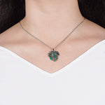 Malu Monstera Blatt Anhänger, 925 Sterling Silber, rhodiniert, grüne Emaille, grüne Zirkonia.