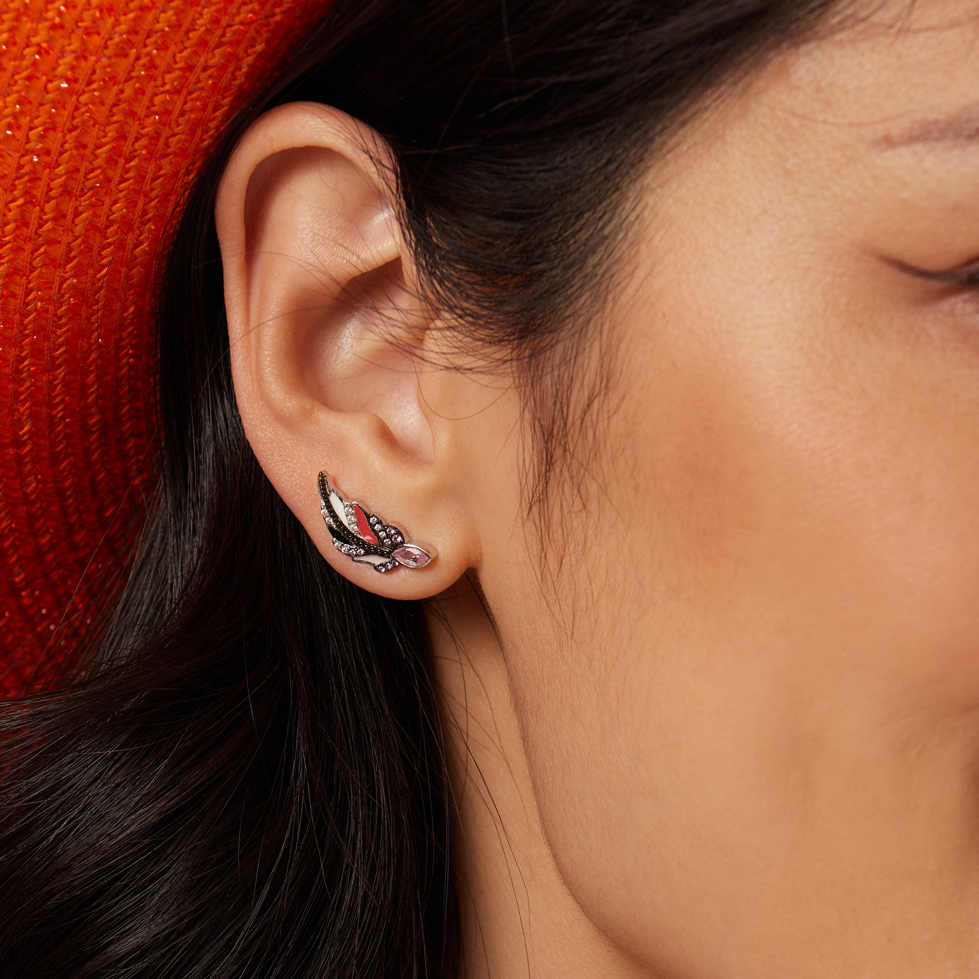 Fabio Flamingo Ohrstecker sind kleine Meisterwerke aus Silber 925. In Form von Flamingo-Federn gestaltet, mit kunstvoller schwarzer und lebhafter Fuchsia Emaille sowie Pink Zirkonia in Marquise-Schliff an den Federspitzen, verleihen sie Ihrem Look eine elegante und verspielte Note.