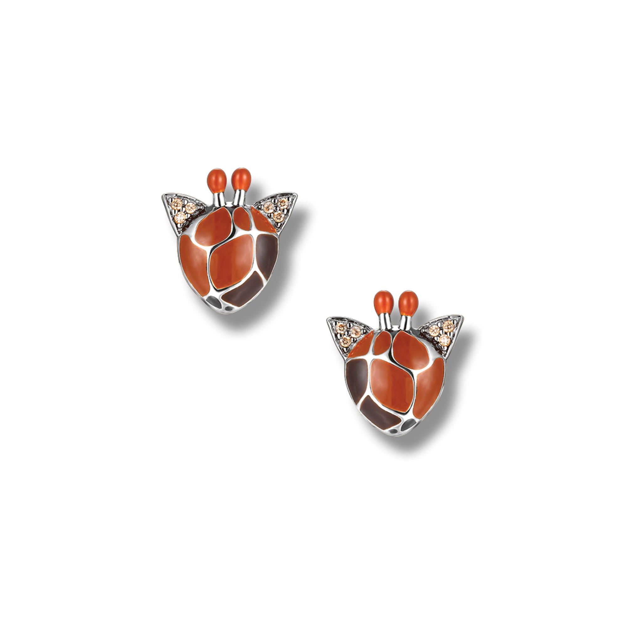 Rafa Giraffen Ohrringe sind niedliche Ohrstecker aus 925 Sterling Silber, kunstvoll rhodiniert, und passen perfekt zum Rafa Giraffen Anhänger. Die verspielte Silhouette einer niedlichen Giraffe, kunstvoll in den Ohrringen dargestellt, wird durch bräunliche Emaille im Giraffenfellmuster akzentuiert. Die Zirkonia in den Ohren fügen einen Hauch von Glamour hinzu, und diese Ohrringe sind ein niedliches und verspieltes Accessoire.