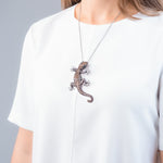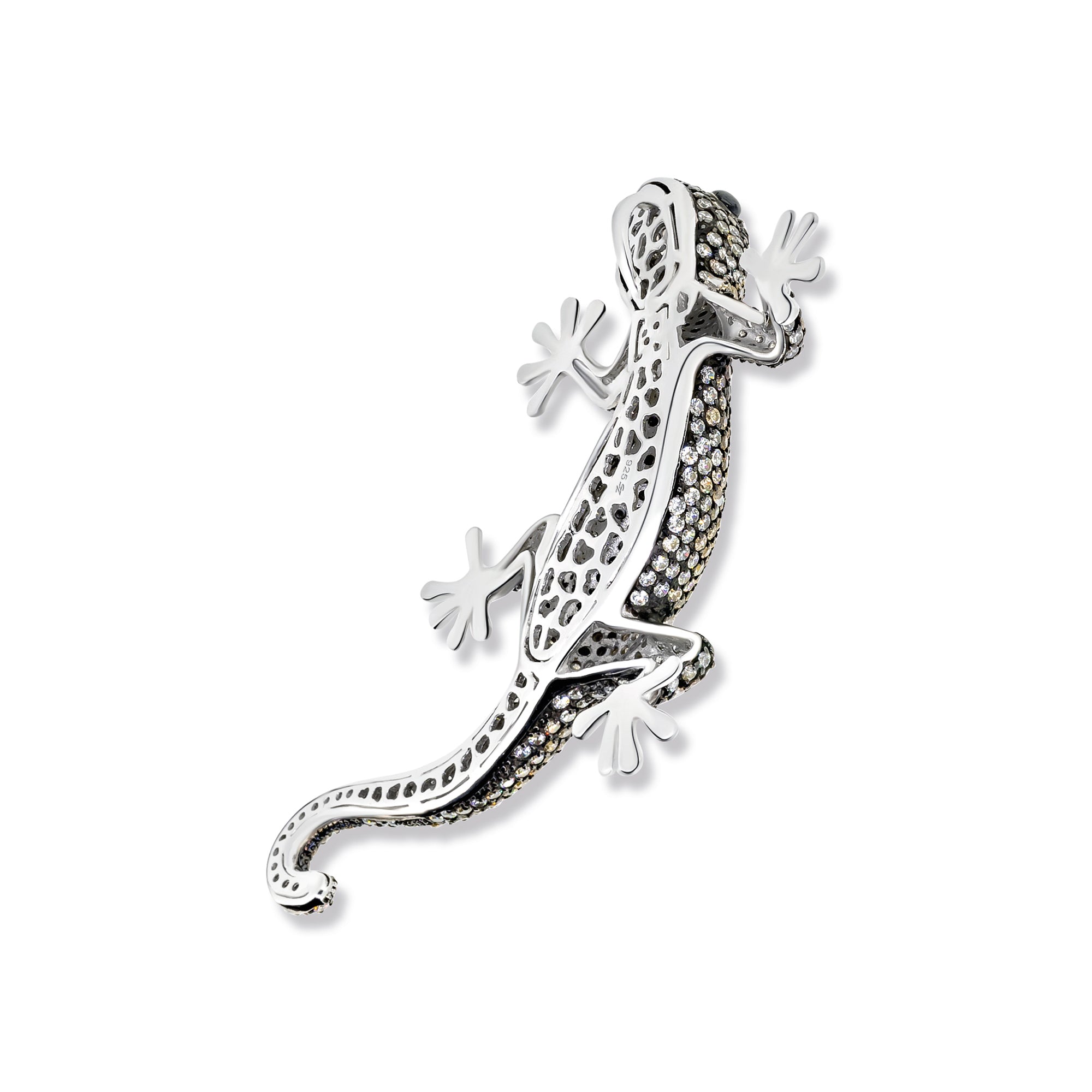 Der Ralf Salamander Anhänger/Brosche ist ein beeindruckendes Schmuckstück aus hochwertigem 925 Sterling Silber. Dieser vielseitige Anhänger kann entweder als auffälliger Anhänger an einer Kette oder als atemberaubende Brosche an Ihrer Kleidung getragen werden. Die zweifarbigen Zirkonia Steine in Braun und Weiß verleihen diesem Schmuckstück eine markante Optik.