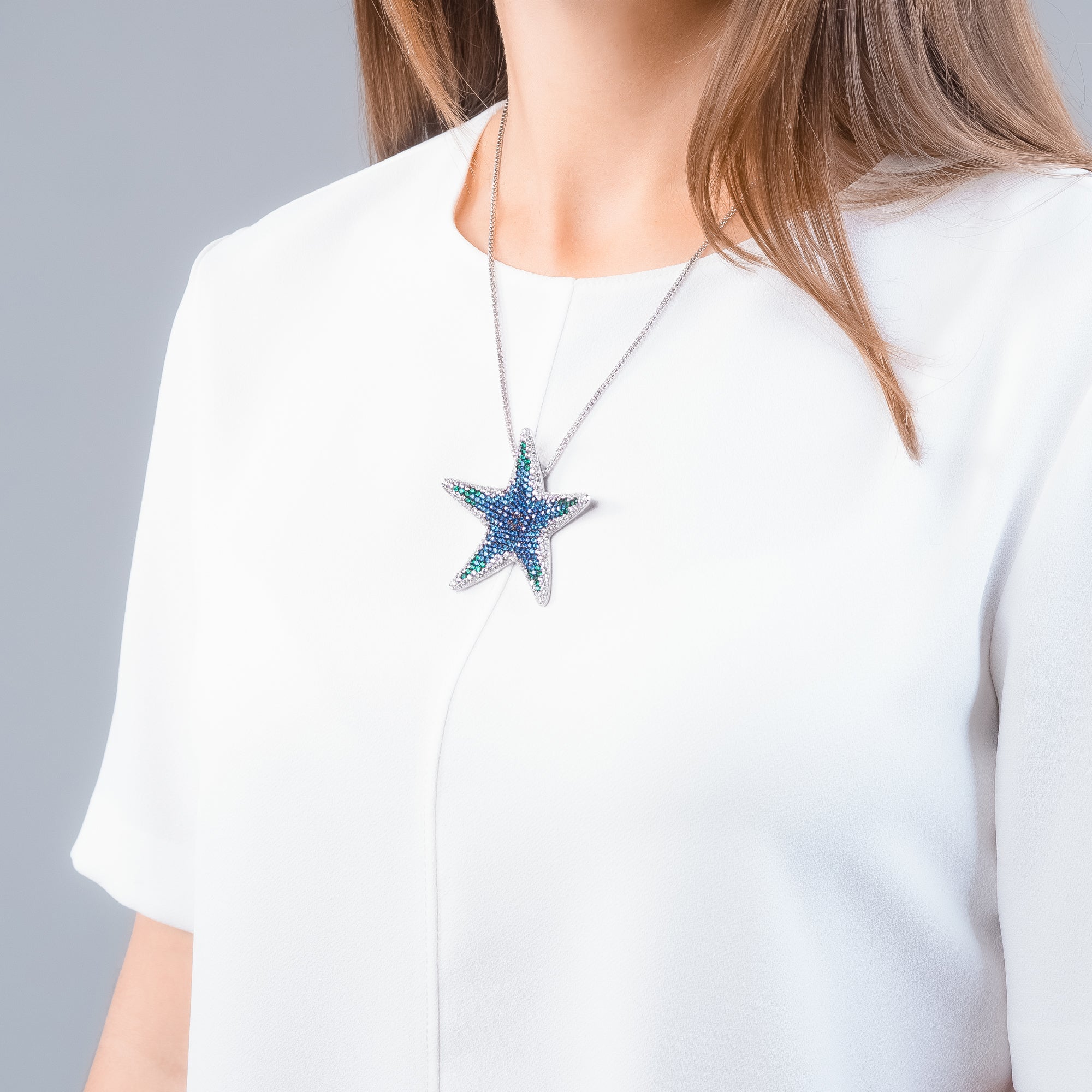 Der Fiona Seestern Anhänger in 925 Sterling Silber fängt die faszinierende Anmut des Meeres ein. Mit rhodiniertem und geschwärztem Silber sowie blauen und weißen Zirkonia Steinen verkörpert dieser Anhänger die Schönheit und das Geheimnis der Unterwasserwelt.