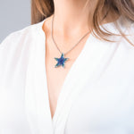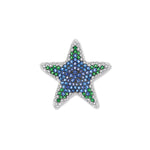 Der Nelly Seestern Anhänger in 925 Sterling Silber ist ein Meisterwerk der Meeresinspiration. Die rhodinierte, geschwärzte Basis wird von schimmernden Zirkonia Steinen in Blau und Weiß akzentuiert, die an sanfte Wellen und den strahlenden Sand erinnern.