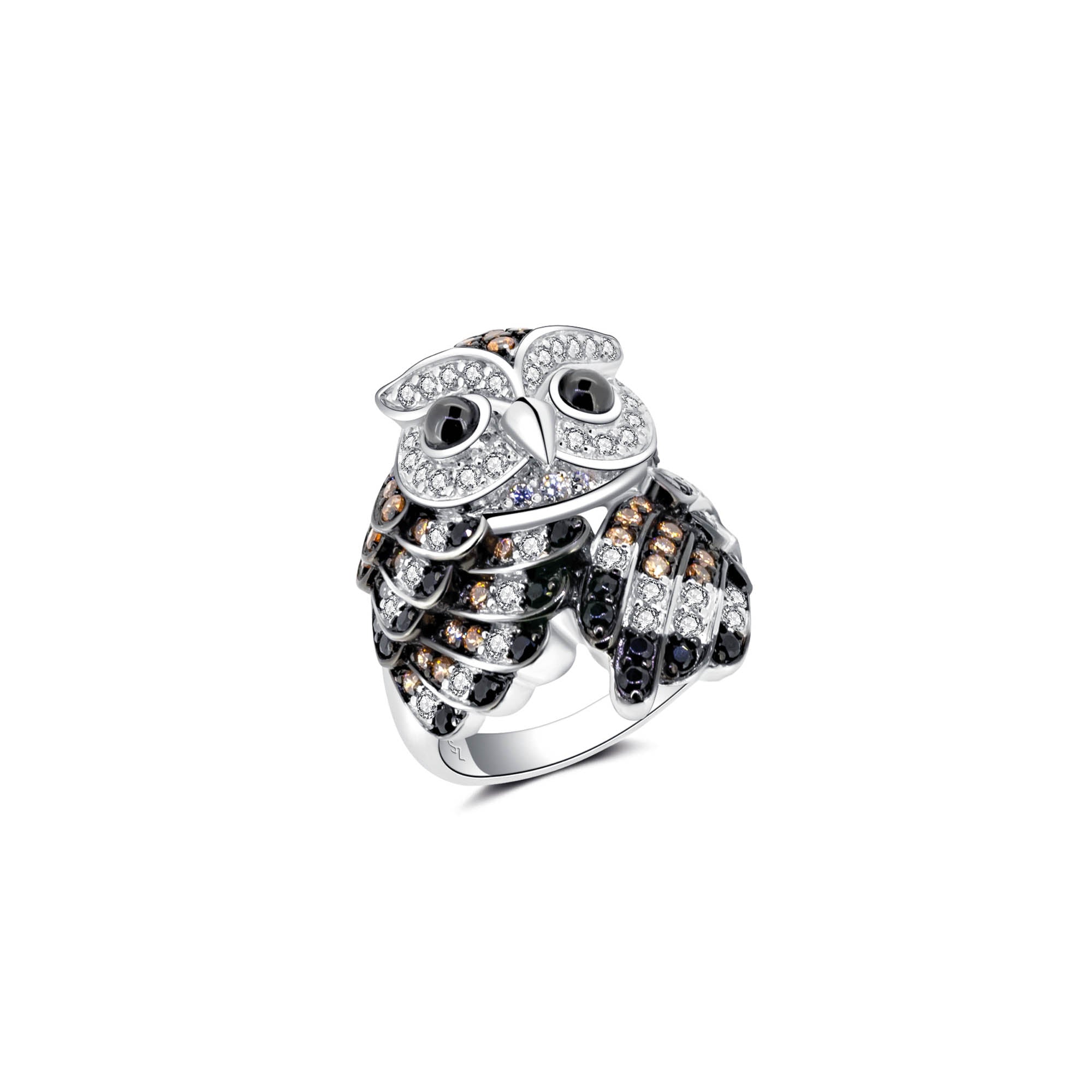 Der Alex Eulen Ring fängt die Anmut der Eulen perfekt ein. Handgefertigt aus hochwertigem 925 Sterling Silber, mit funkelnden Zirkonia-Steinen in braun und weiß verziert.