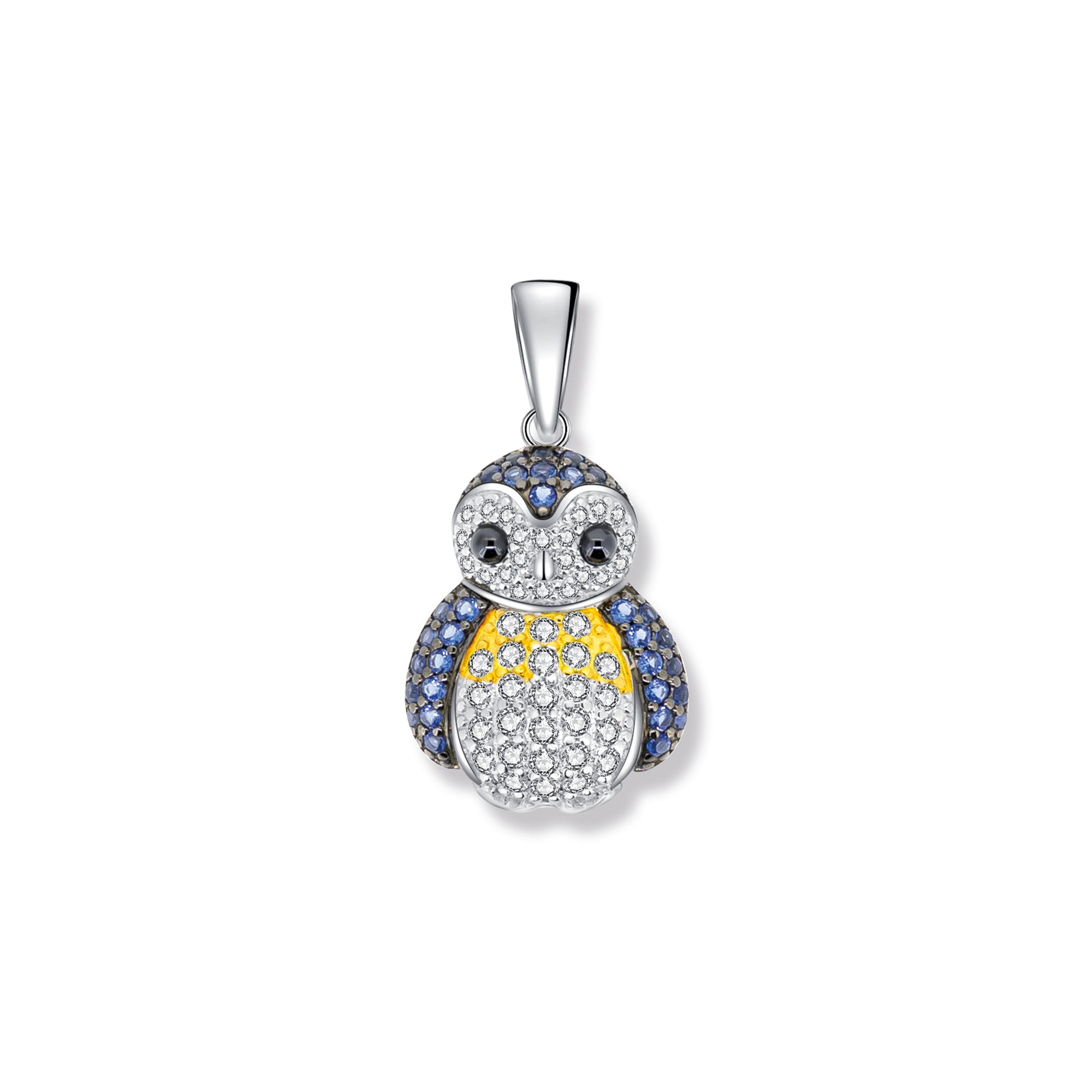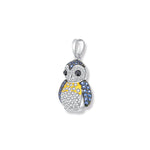 Der Fernando Pinguin Anhänger in 925 Sterling Silber ist eine charmante Hommage an die Anmut und Faszination der Pinguine. Mit kunstvoll platzierten Zirkonia Steinen in Blau und Weiß sowie einer Kombination aus rhodiniertem, geschwärztem und vergoldetem Silber bringt dieser Anhänger den Zauber der Polarwelt an Ihren Hals.