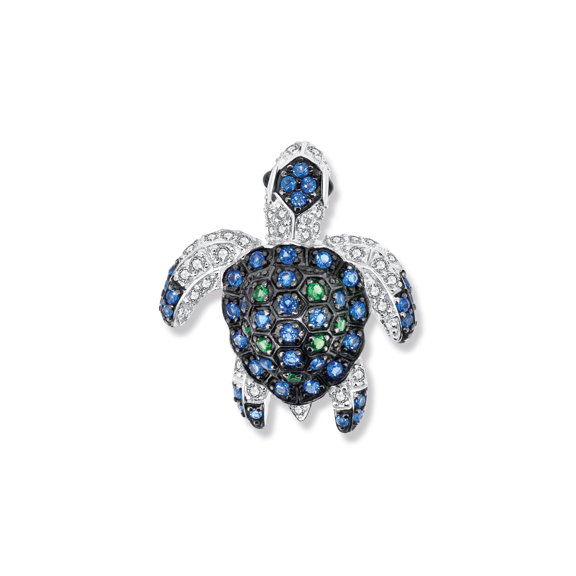 Tauchen Sie ein in die faszinierende Welt der Ozeane mit dem Schelly Schildkröten Anhänger. Dieses Meisterwerk aus 925 Sterling Silber vereint meisterhafte Handwerkskunst mit maritimen Charme. Das rhodinierte und geschwärzte Silber verleiht dem Anhänger eine edle Note, während die blauen und weißen Zirkonia Steine die Schönheit des Wassers und der Wellen einfangen. Passender Tipp: Ergänzen Sie Ihren Look, indem Sie den Schelly Schildkröten Anhänger mit passenden Schelly Schildkröten Ohrringen kombinieren. Dieses Ensemble symbolisiert Ihre Wertschätzung für die Schönheit der Meere und Ihre Verbindung zur Natur. Passender Der Schelly Schildkröten Anhänger ist mehr als nur ein Schmuckstück – er erzählt eine Geschichte von Freiheit, Weite und tiefer Verbundenheit zur Natur. Die zarte Kontur der Schildkröte und die lebendigen Farben der Zirkonia Steine machen diesen Anhänger zu einem Blickfang, der bewundernde Blicke auf sich zieht.