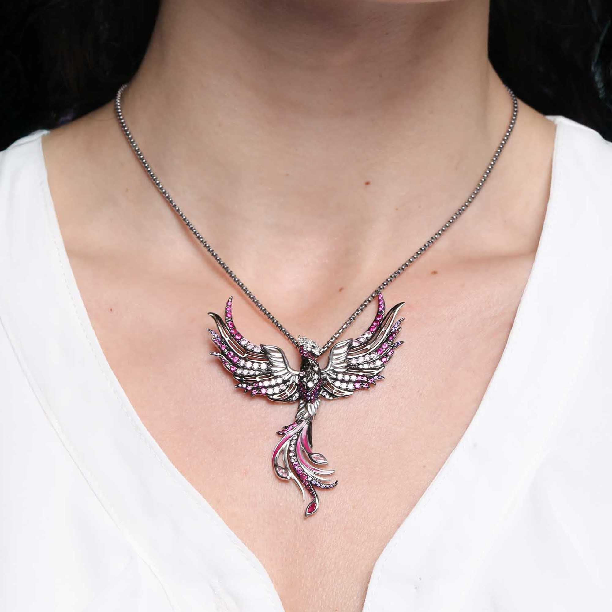 Der Flamara Phönix Anhänger aus Sterling Silber, ein meisterhaftes Statement-Schmuckstück mit filigranen Flügeln, schimmernder Emaille und beeindruckender Symbolik, ist das Highlight der SEINERZEIT Dream Kollektion.