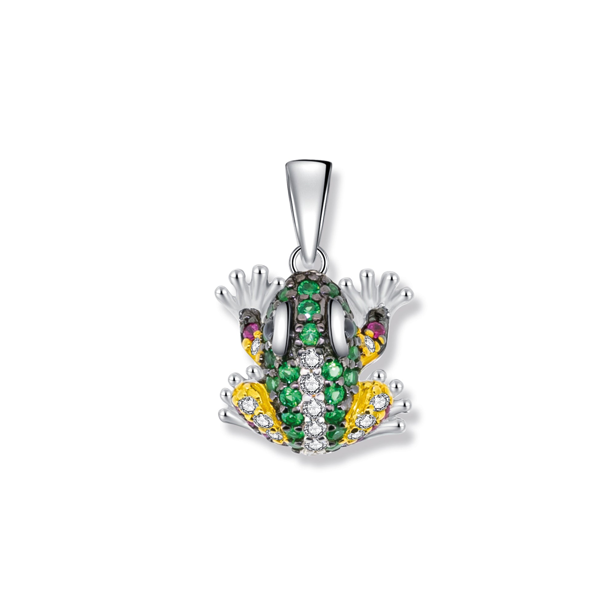 Der Freddy Frosch Anhänger ist ein bezauberndes Schmuckstück aus 925 Sterling Silber. Die niedliche Darstellung des Froschs mit den funkelnden Zirkonia-Steinen in verschiedenen Farben verleiht Ihrem Look einen verspielten Charme.