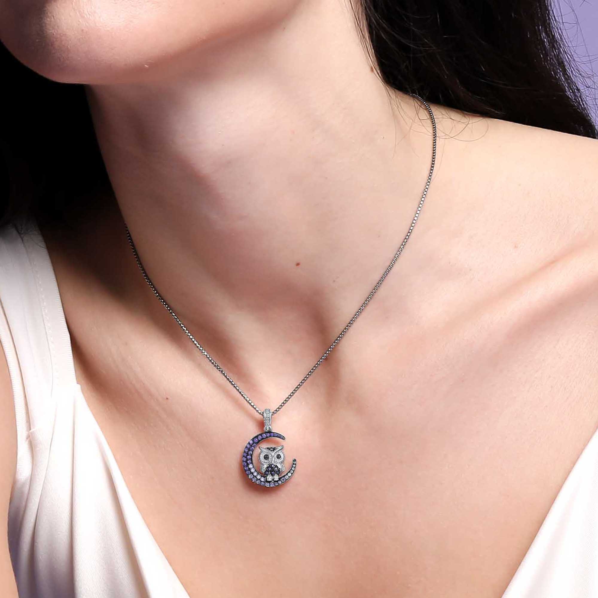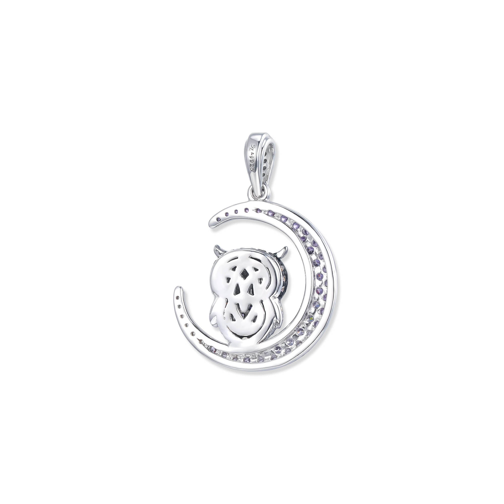 Der Luna Eulen Anhänger aus Sterling Silber, mit einer Eule auf einem Halbmond und verziert mit bunten Zirkonia, ist ein elegantes Schmuckstück aus der SEINERZEIT Dream Kollektion, symbolisch für Weisheit und Intuition.
