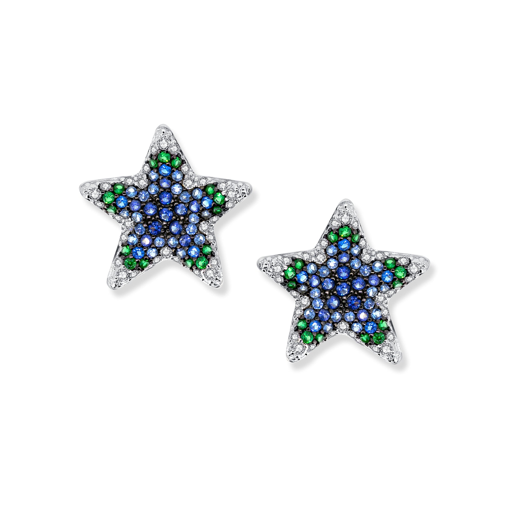 Die Nelly Seestern Ohrringe in 925 Sterling Silber lassen Sie das Gefühl des Ozeans tragen. Die rhodinierte, geschwärzte Basis wird durch funkelnde Zirkonia Steine in Blau und Weiß akzentuiert, die an das schimmernde Wasser und den glänzenden Sand erinnern.