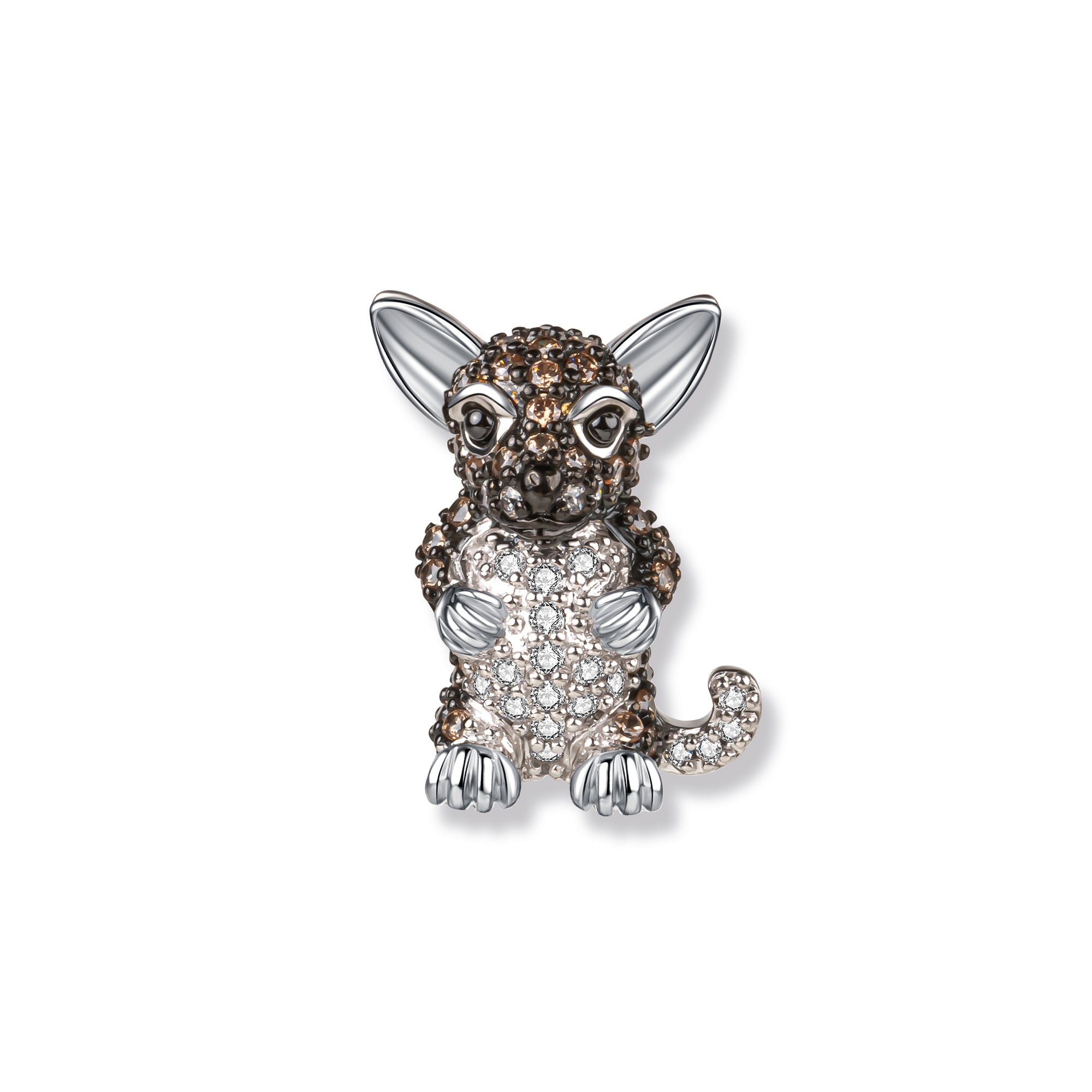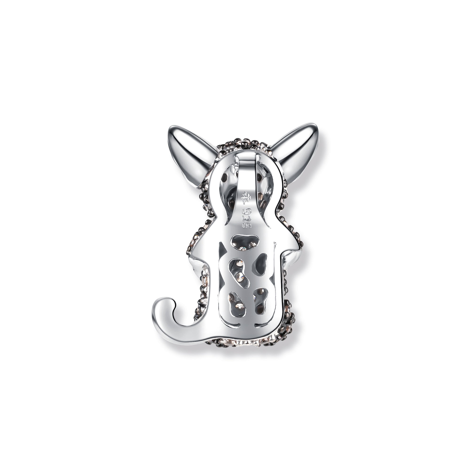 Der Nicki Hunde Anhänger in 925 Sterling Silber fängt den Charme eines Chihuahuas in detailreicher 3D-Optik ein, verziert mit zweifarbigen Zirkonia Steinen.