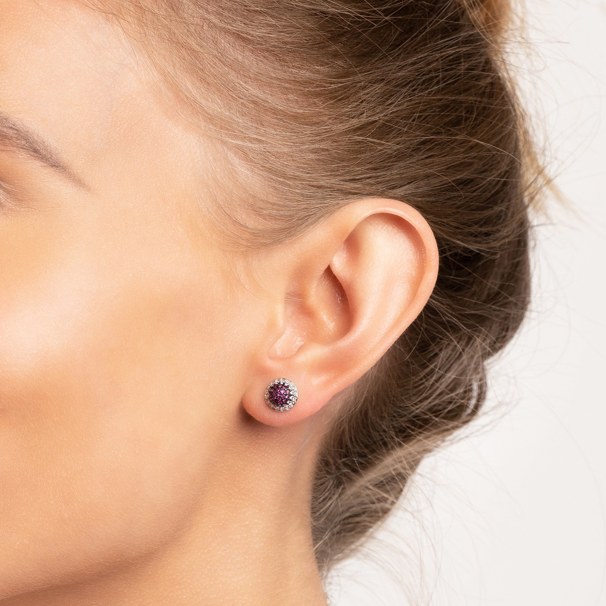 Elegante Ruby Bambus Ohrringe - 925 Sterling Silber, rhodiniert, mit funkelnden Zirkonia-Steinen in Weiß und Fuchsia. Ein Hauch von Farbe für besondere Momente.