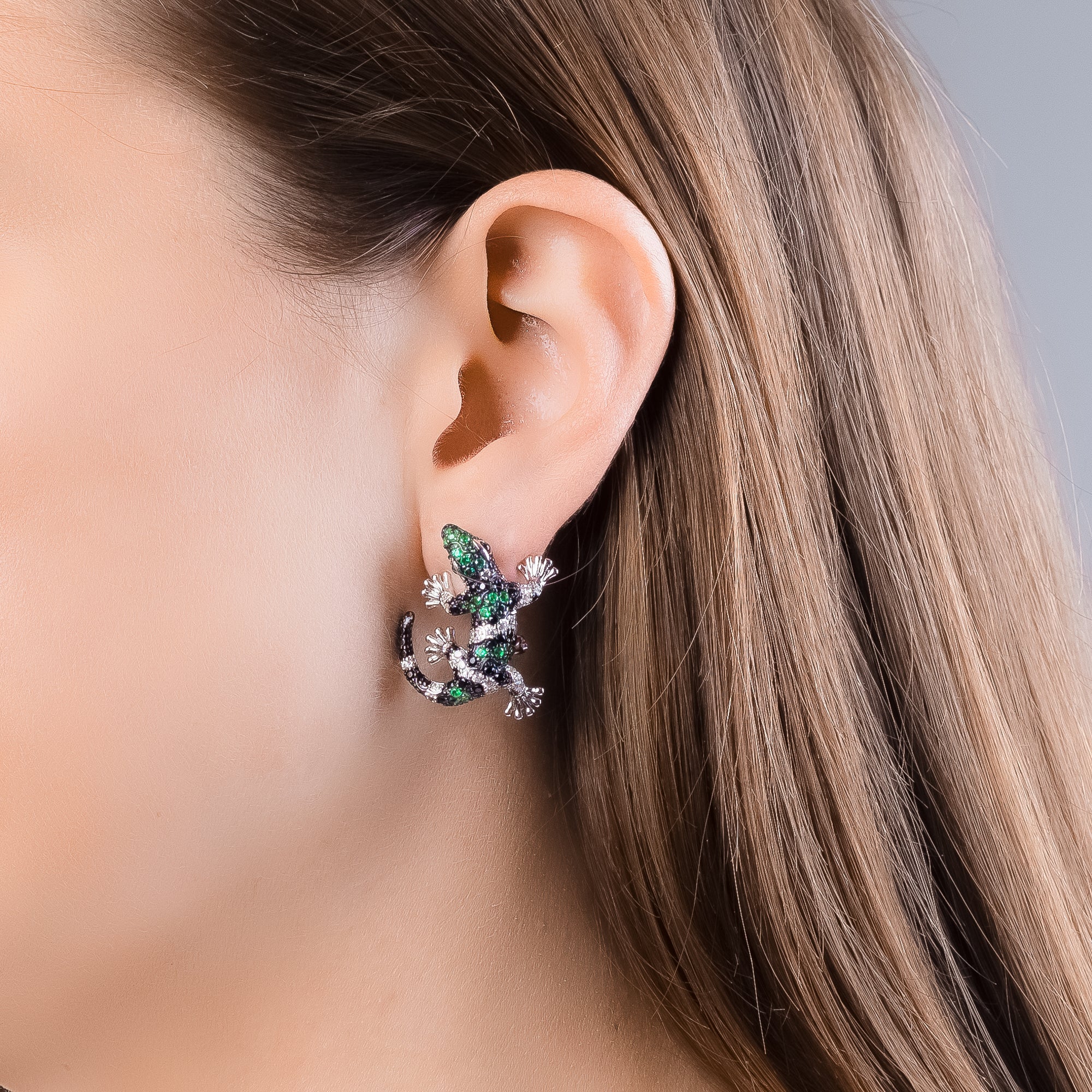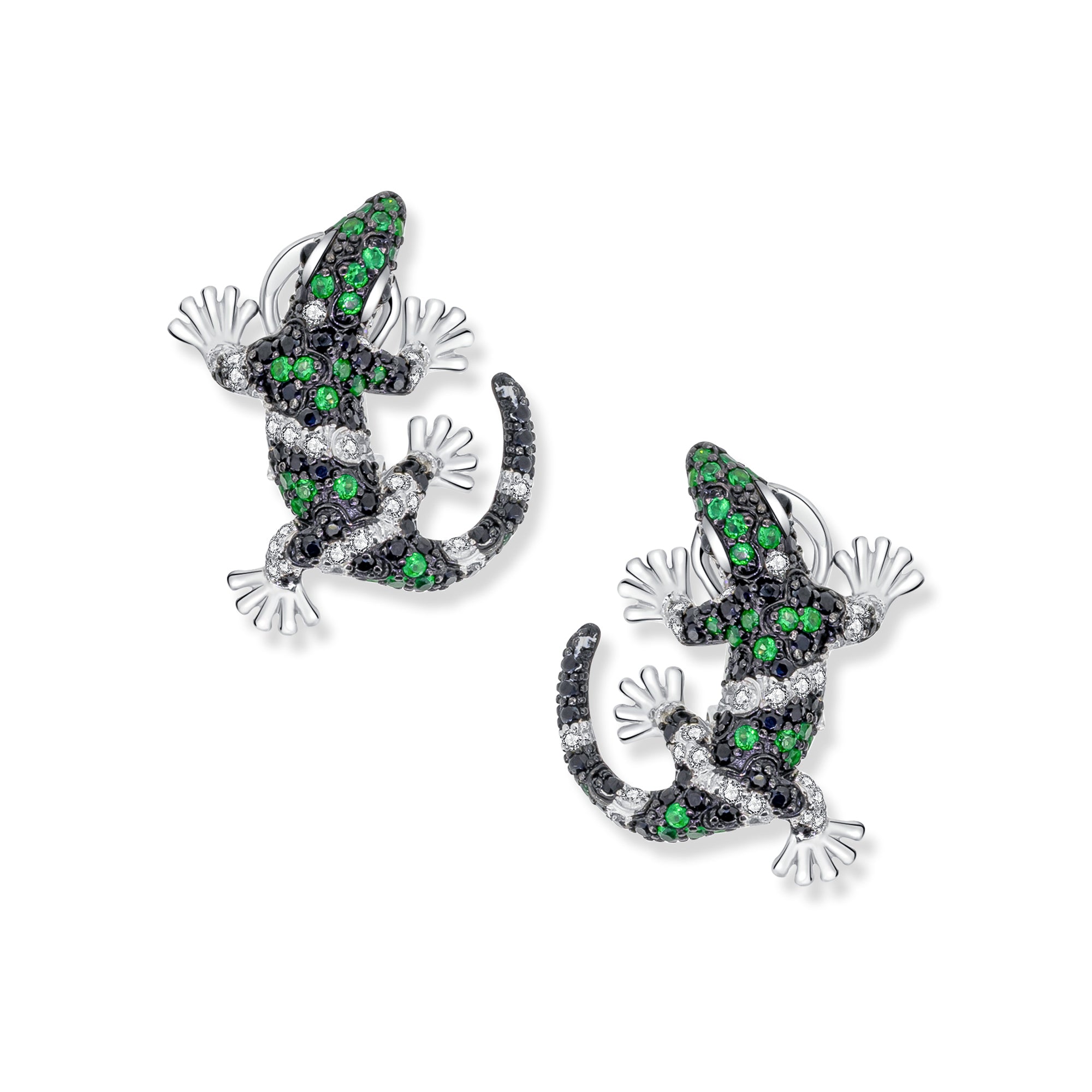 Die Speedy Salamander Ohrringe sind entzückende Schmuckstücke aus hochwertigem 925 Sterling Silber. Diese Ohrringe verkörpern die Anmut und den Charme eines Salamanders mit grünen und weißen Zirkonia Steinen. Die rhodinierte und geschwärzte Oberfläche verleiht ihnen eine moderne Eleganz.