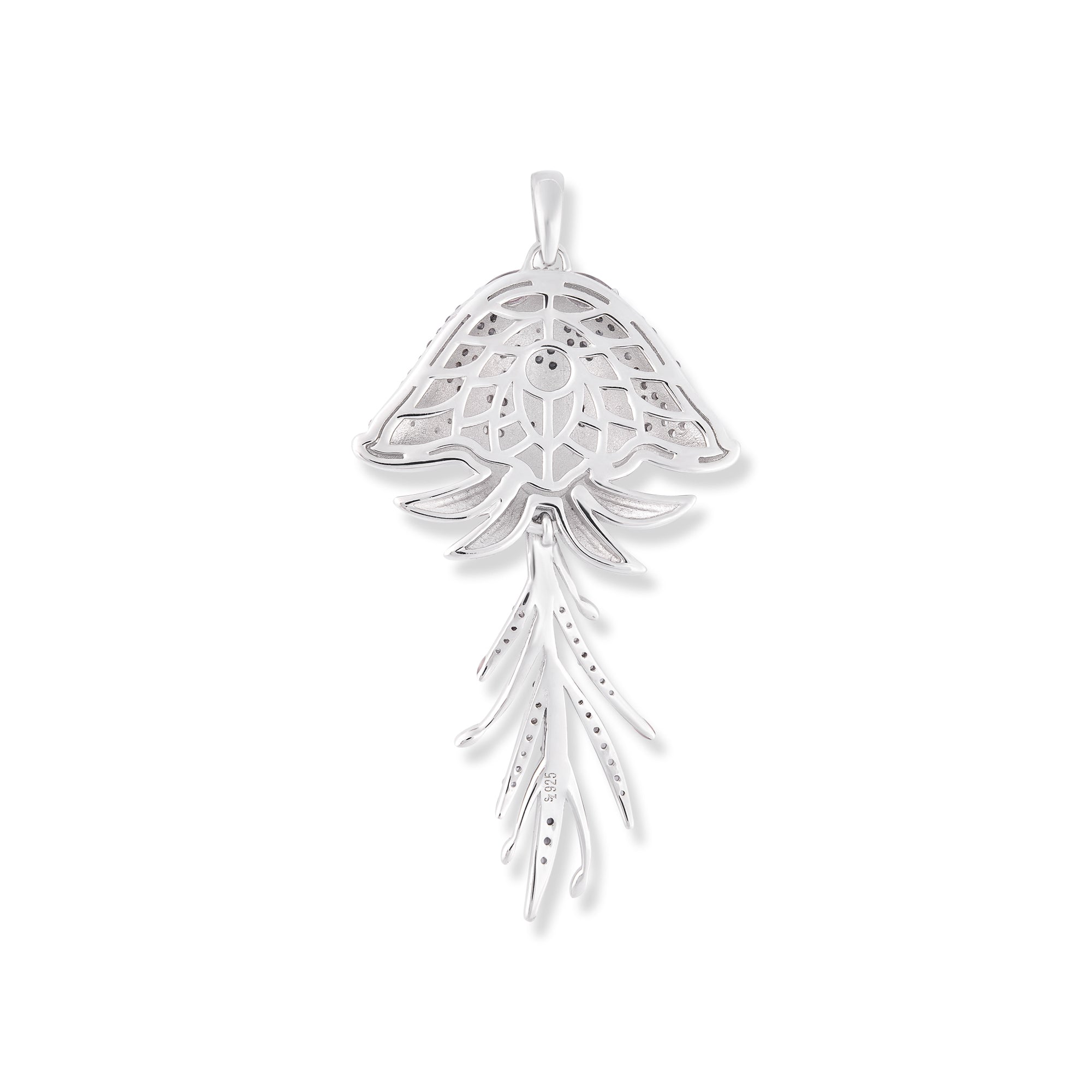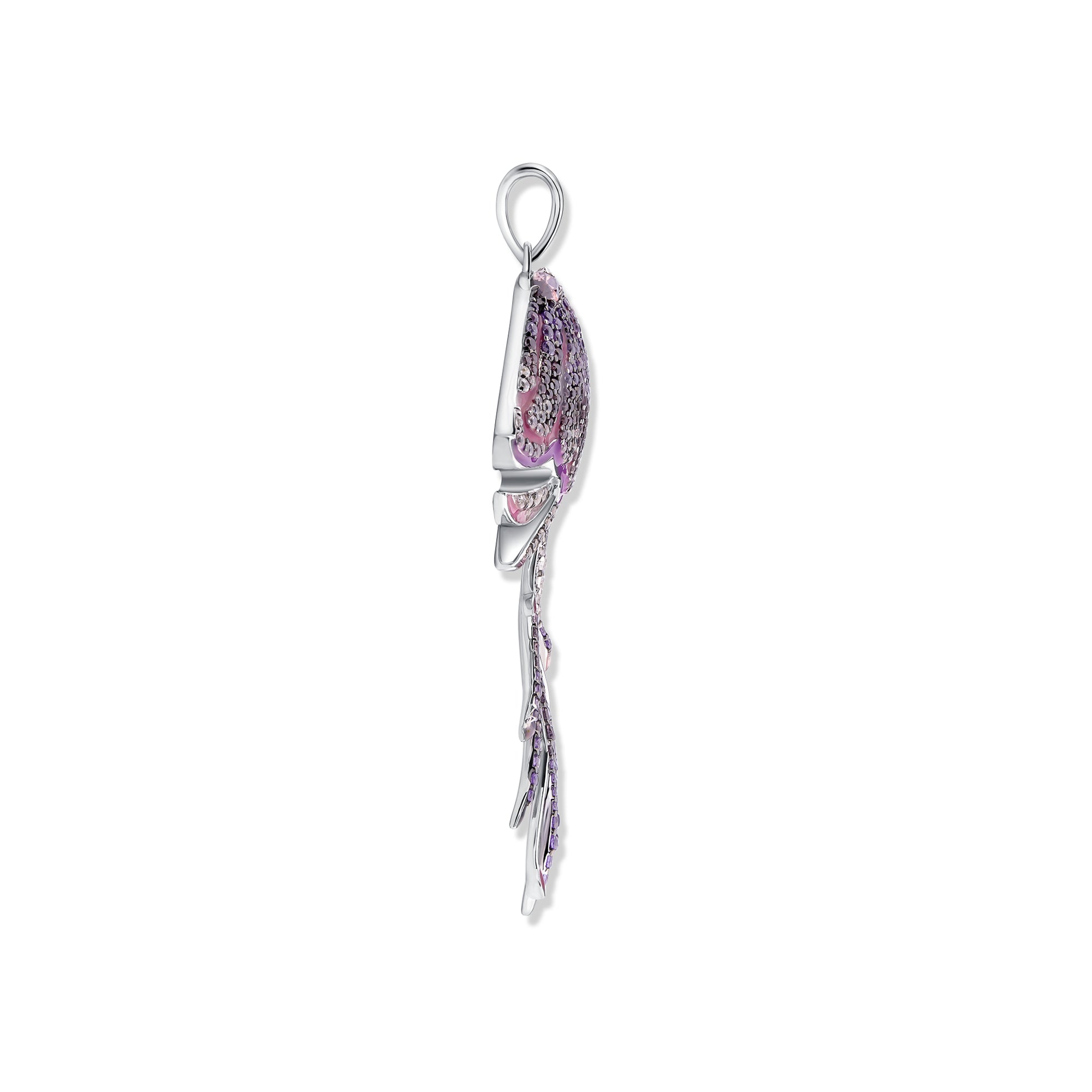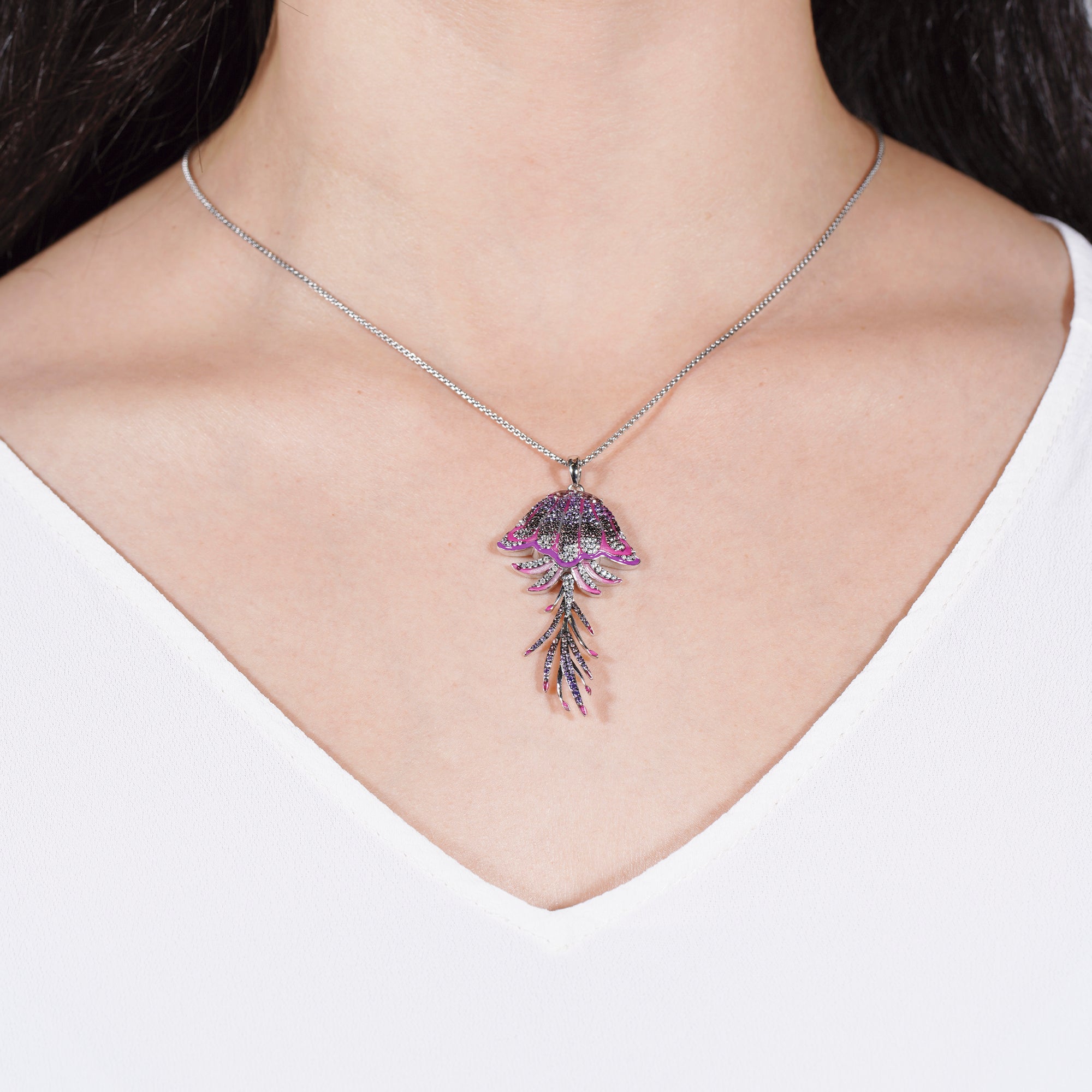 Trixie Quallen Anhänger - Ein faszinierender Anhänger aus rhodiniertem Sterling Silber, der die Schönheit und Anmut einer Qualle mit leuchtendem Fuchsia und funkelnden lila Zirkonia Steinen verkörpert.
